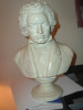 Hand-carved white owl with detailed feathers, glass eyes, about 5" to 6" tall, very heavy for such a small object, possibly weighing 1.5 to 2 pounds.
