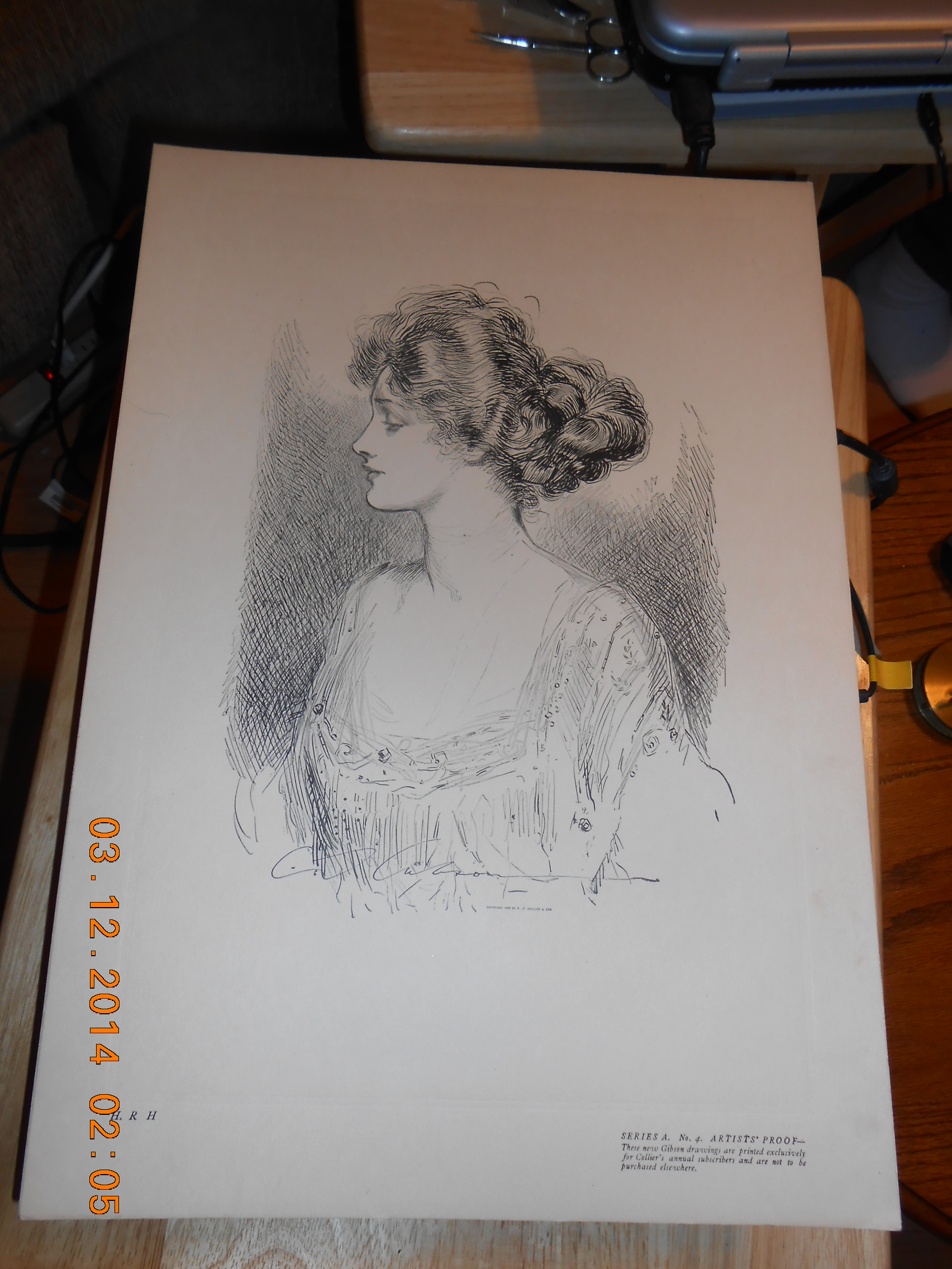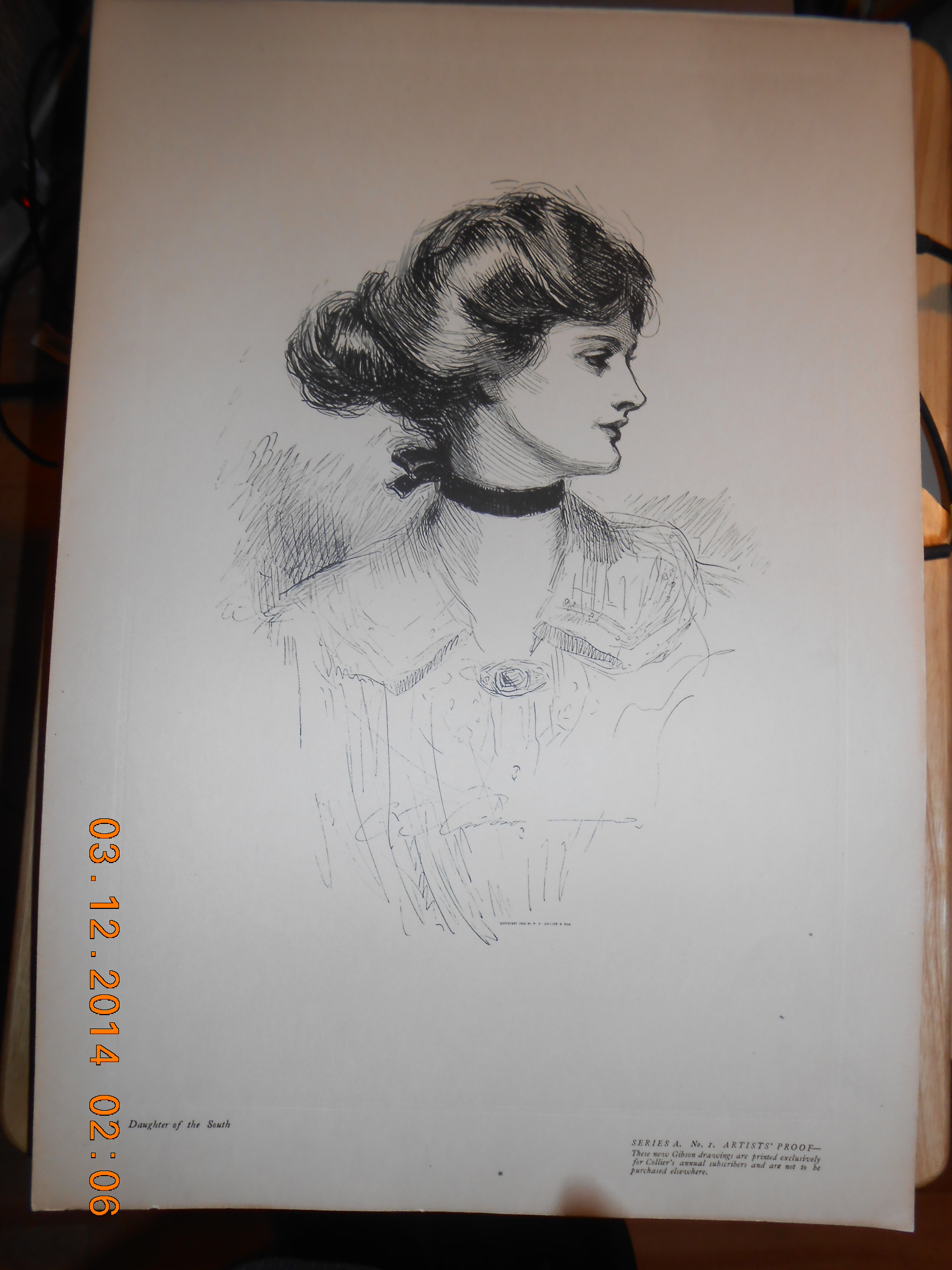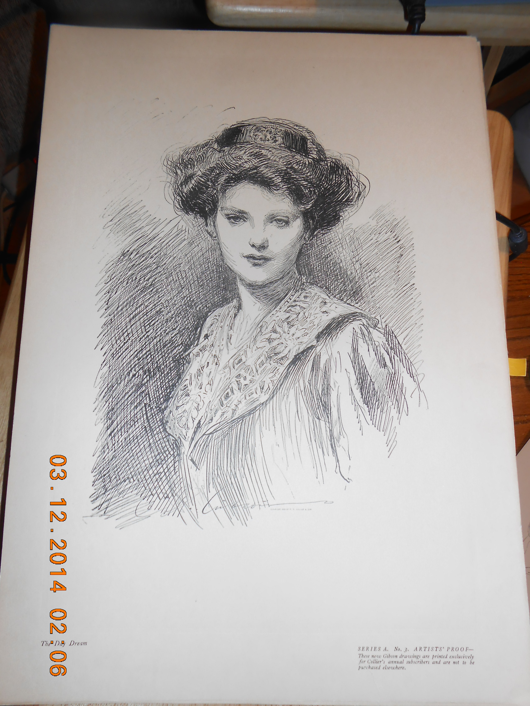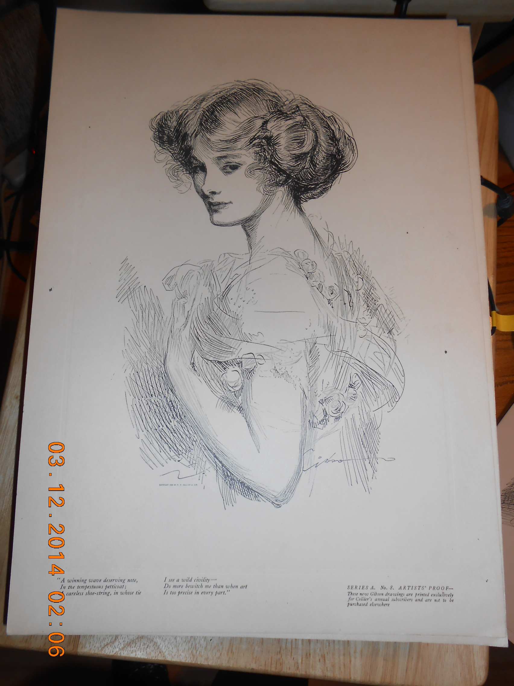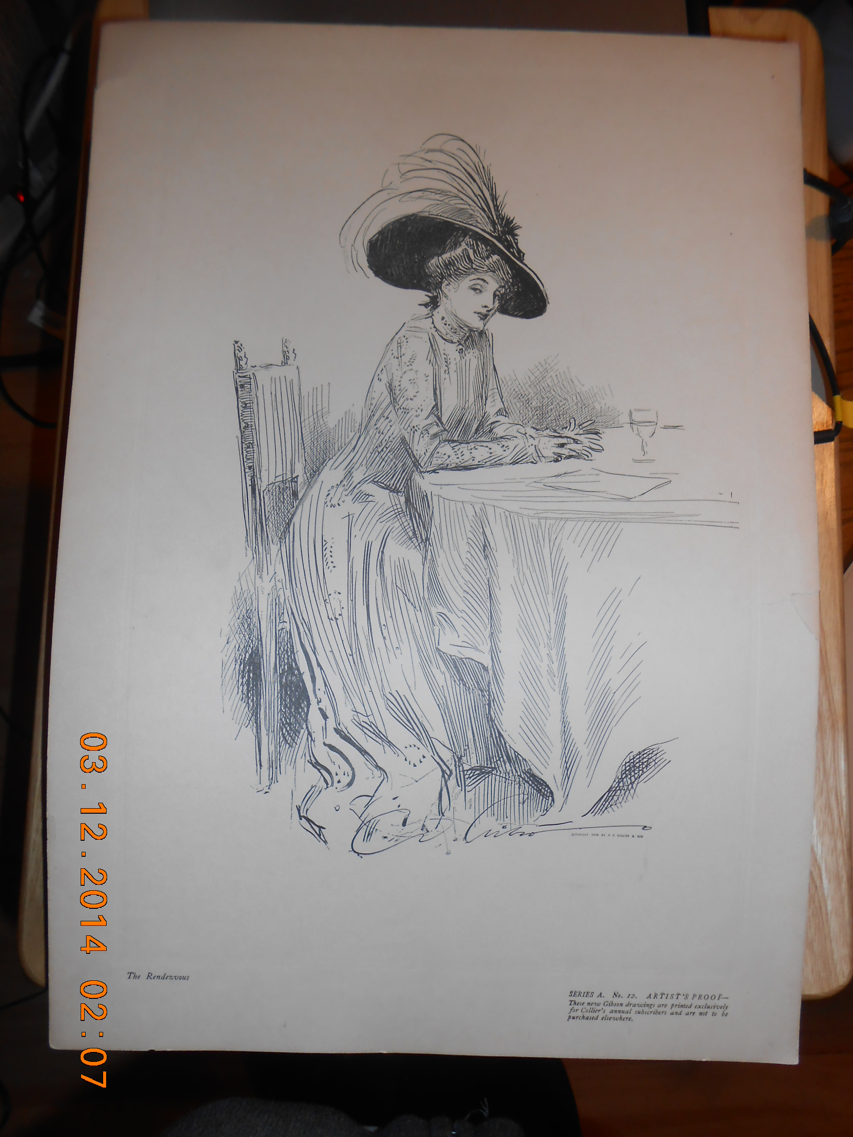 All I know is we bought these from what use to be a Antique Store in Dayton, Ohio, it is a pen and ink drawing by illustrator Charles Gibson early twentieth century in America I have Series A. 1,2,3,4,8,12 artist proof. The drawings were printed for Collier's annual subscribers.