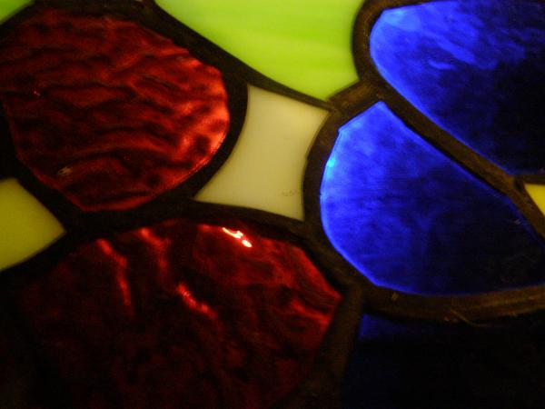 As said in the history, someone in the neighborhood put 4 lamps total out for trash when they were cleaning out their newly bought house. I love stained glass and couldn't stand to see anything like that get thrown away. This is the largest of the 4, at over 3 feet across at the widest point, about a foot and a half from rim to bottom and 10 feet around. Amazingly, the glass is complete and seems in original condition (a friend looked at it and said he saw no evidence of restoration) with only minor and barely noticeable cracks here and there. I don't really know anything about it (including what other information I could add to make it easier for all of you fine people to help me. :) so any details would be wonderful. Also, if there is anything else I can add, please let me know and thank you for your help.
