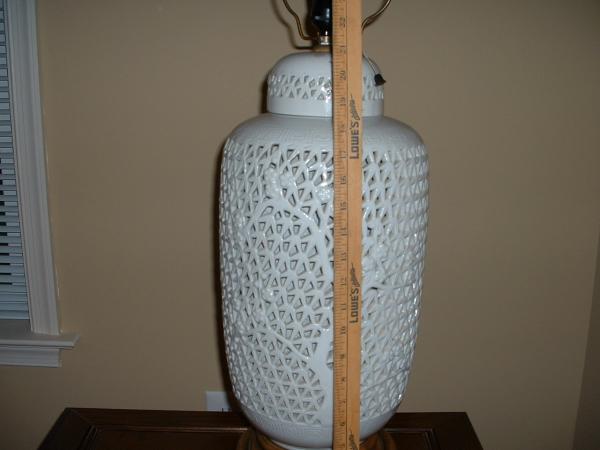 The ginger jar has been made into a lamp and has a light bulb inside the jar to an added effect.