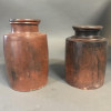 These are Chinese ginger jars left to me by grandmother who died in the 1980s. I believe they were collected individually rather than as a set. Each has a twin circle mark on the base. The larger jar has an additional mark that looks a little like bird footprints. Or it may just be a flaw. The lid of the large one was unfortunately cracked and roughly re-glued before it came to me. Otherwise they are in good condition.