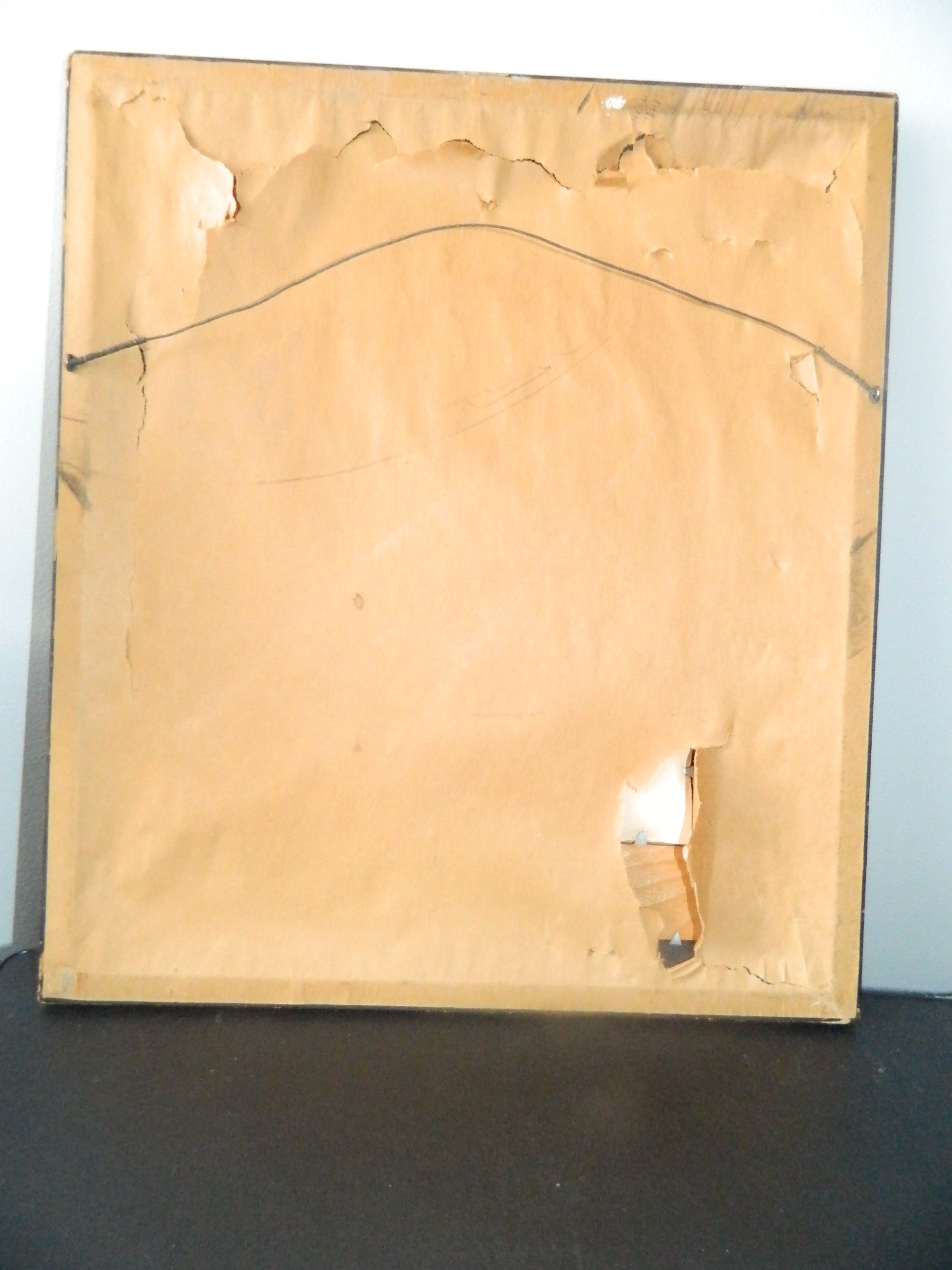 Condition: There is no known repairs on the painting. The front of the painting is in good condition. The back of the painting is ripped, but it is only the paper that protects the painting itself. There are no visible cracks, The frame looks to be on the older side.Its 16 inch high and 14 inch widht.