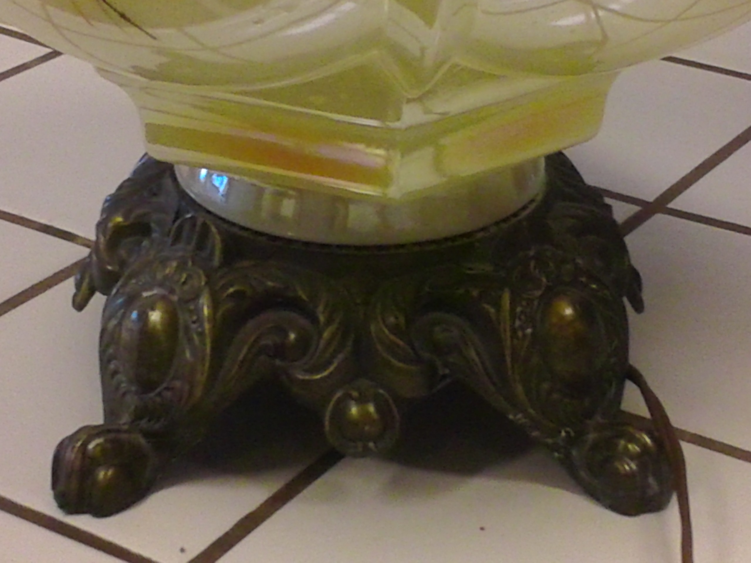 Lamp was bought new in 1975. Glass globe with brass base. Lamp is 22" tall and 14" wide. No Shade but electical works