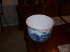Green tinted glass bowl with hand painted flowers. Also have two candle holders that match the bowl.