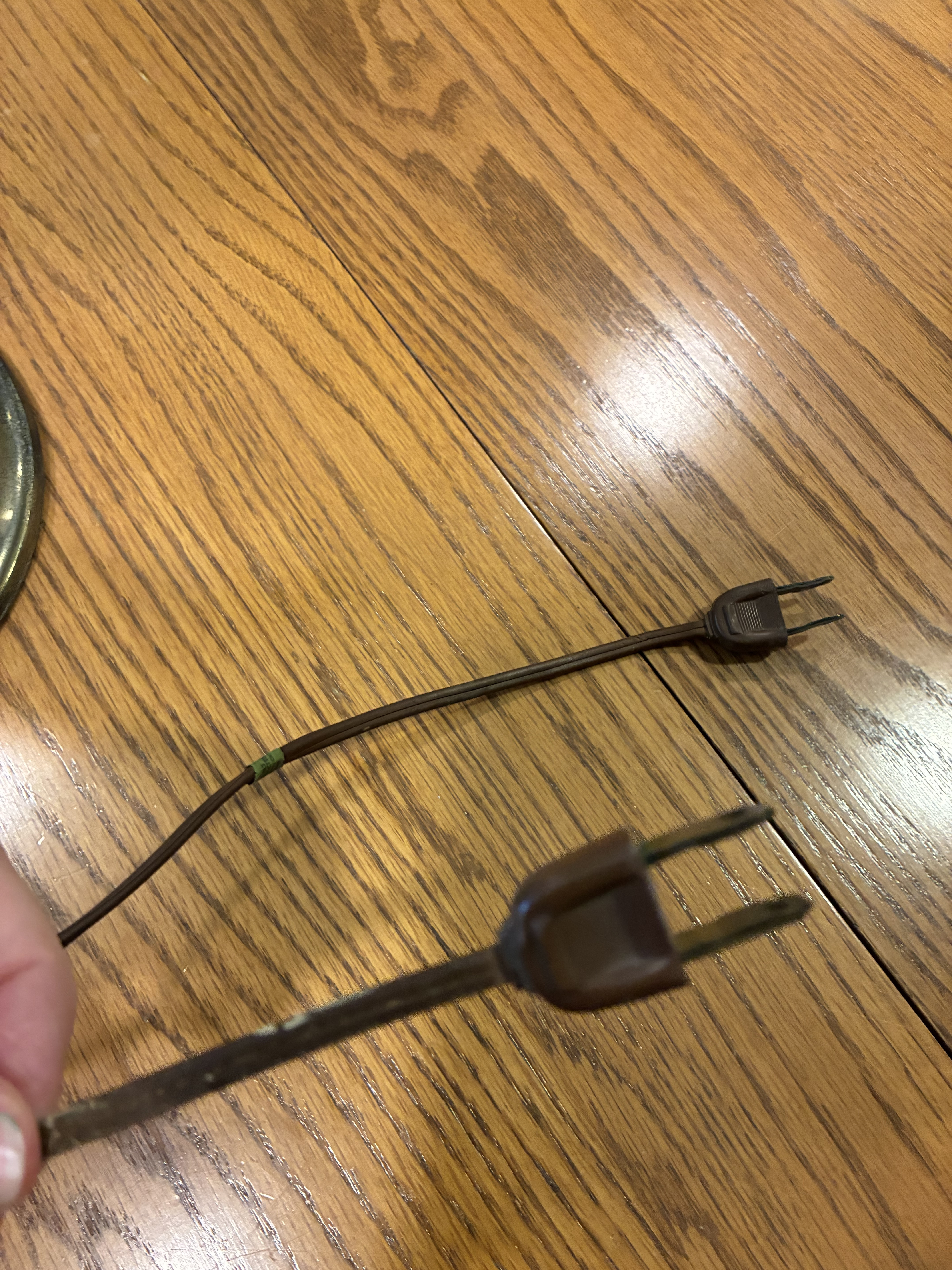 Overall good condition. The glass shows no chips or cracks. Metal fittings have some surface wear and patina appropriate to age. Electrical cords appear original, with older style non-polarized plugs. Both lamps are functional but should be professionally rewired for safety if intended for daily use.