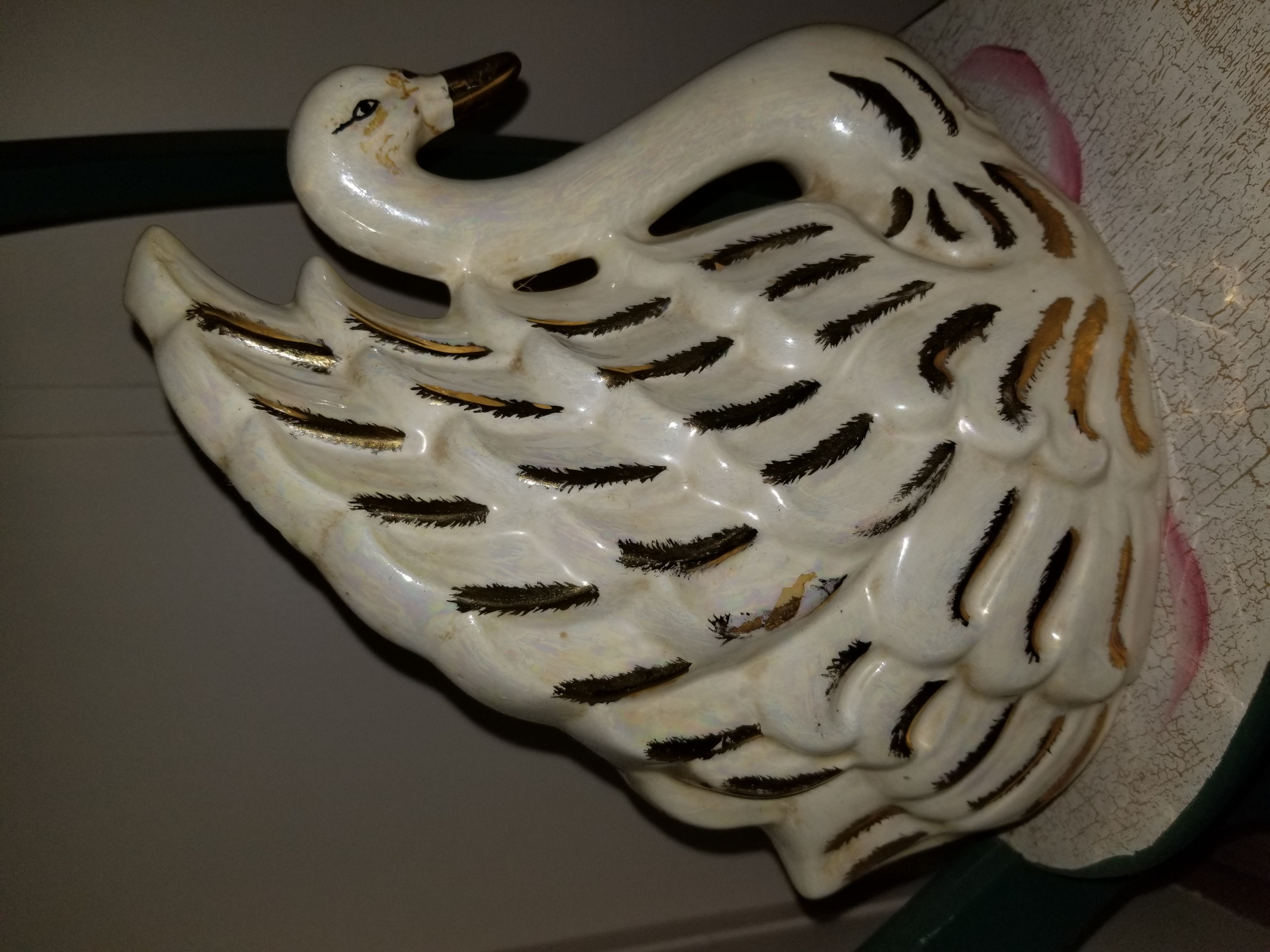 Open vessel Swan, with a glaze and metallic gold paint accent