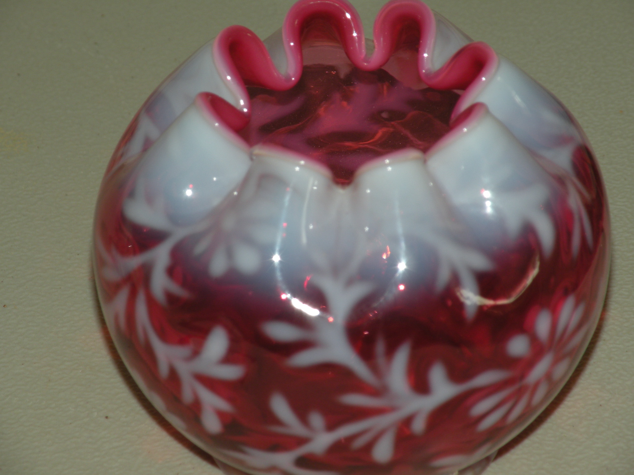 I hate to burst your bubble, but these cranberry pinched rim rose bowls are for the most part late Victorian examples that sell for under $100.00 at auction.