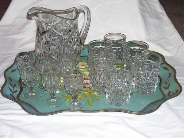 This set was given to me as a gift from my aunt.  It came out of my grandmother's collection which may have come from her mother.  It may be just cut glass but was hoping the age of the pieces would increase its value.  I would like to list it with Ebay or with a consignment shop but wanted a reasonable idea of what it is worth.