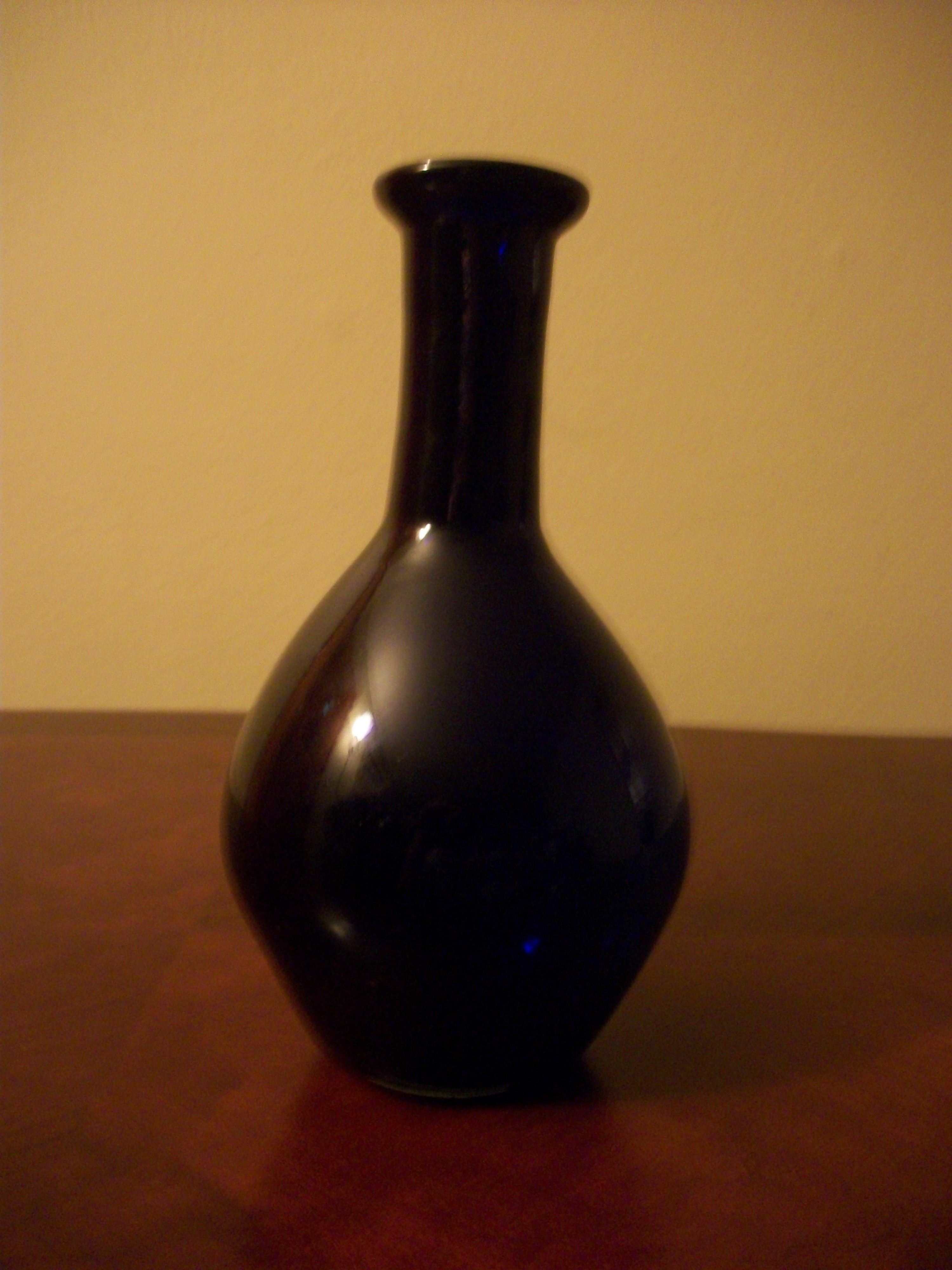 I bought both of these at an auction and was curious as to what they are worth and who the blue one may be made by. They are both hand blown. The gold one is Blenko 639, but that is the only information that I have on that one.