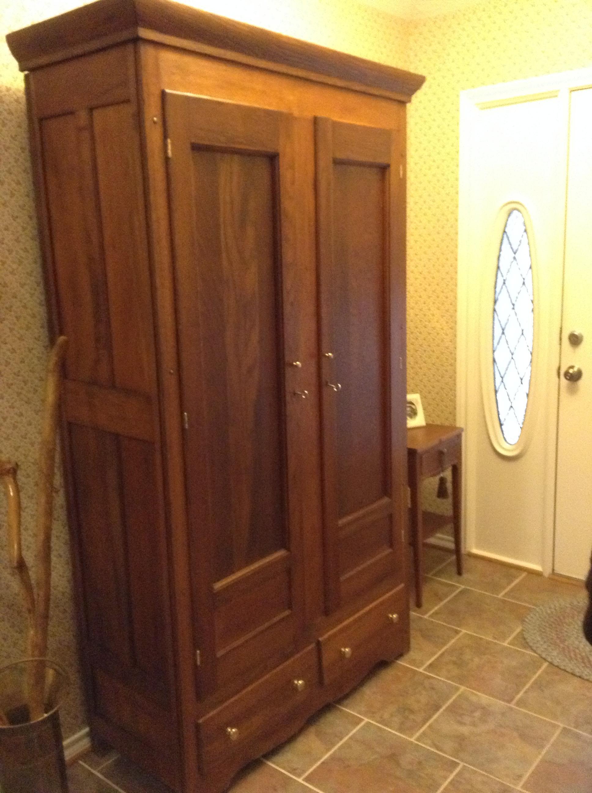 This wardrobe had original stain finish. I stripped it but did not reapply a stain, only tung oil.