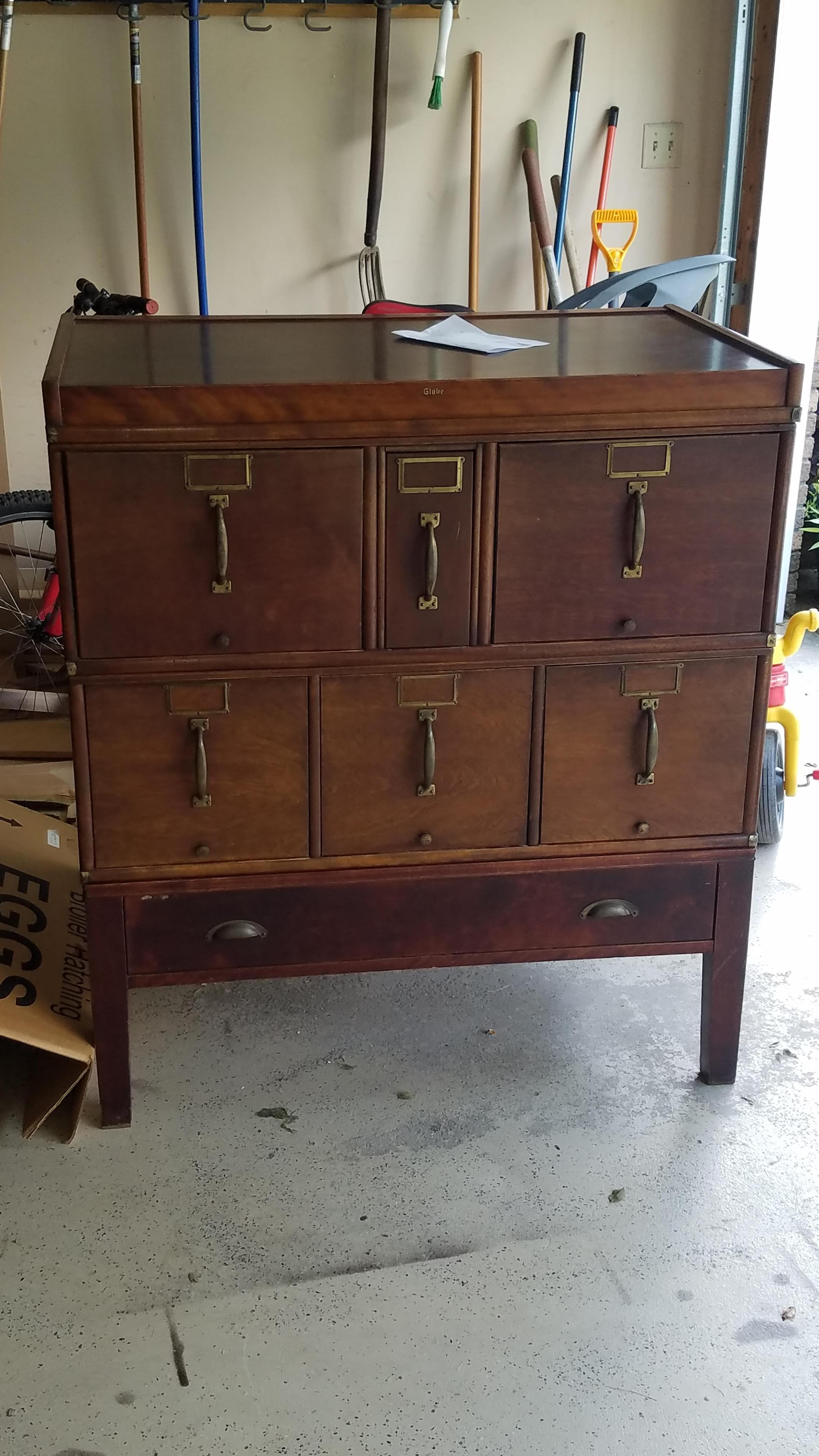 I recently purchased this Globe filing cabinet at auction. I'm looking to get an idea of the age and estimated value. The condition is overall good with some scuffs here and there but it seems like it was used in a law office so some wear is expected.