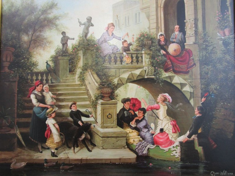 There are multiple artists with the name Glynn Williams, but the one most frequently associated with works like this is notthe same as the British sculptor Sir Glynn Williams (b. 1939). Instead, this appears to be a decorative artist — possibly working under a pseudonym — who created Rococo revival or salon-style decorative paintings often mass-produced or workshop-generated, particularly for home décor, hotel art, or export markets in the mid-to-late 20th century.