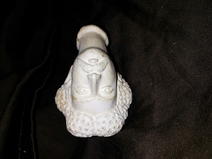 This is a Goedewaa Turk head pipe.  The figure looks alot like Sudam Husein to be honest.  I have done some research on it and found some similars but none just like it.  It could possibly be a custom job of some sort?  It reads Goedewaa Gouda on the stem and it has never been burned or used.  I would consider it in excellent shape and it could probably be cleaned to a mint condition but i have not messed with any of that.  The pictures really bring out some stains/dirt that really are not that noticable under regular light.  The stem is 5" long and the height of the bowl to the base of the stem is 2 inches and the head is about 1.5" from tip of nose to back of head.