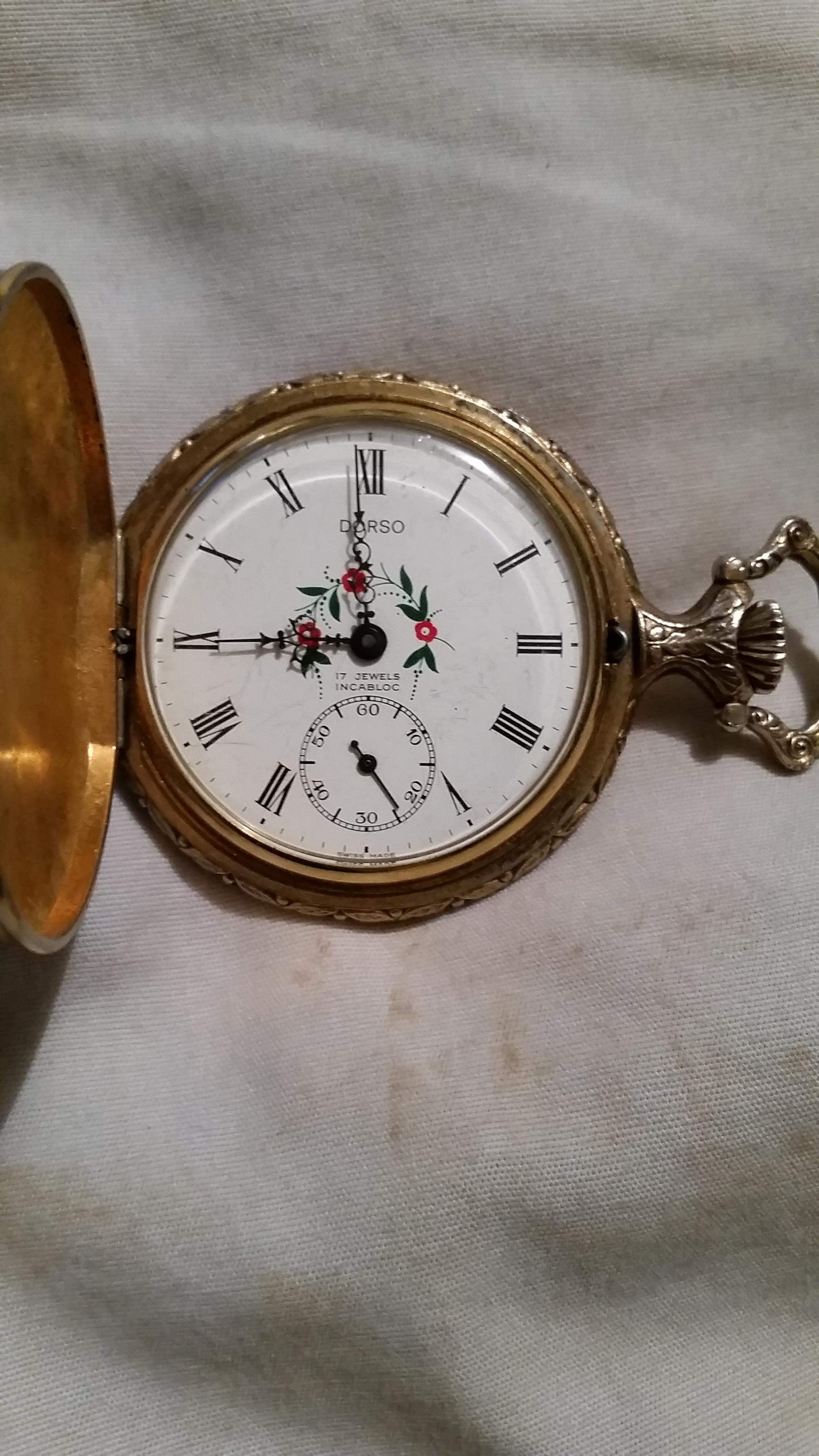 Found this Antique Gold pocket watch. Roman Numerals with writing that says "Dorso- 17 jewels in cabloc". I am wondering how much it's worth.