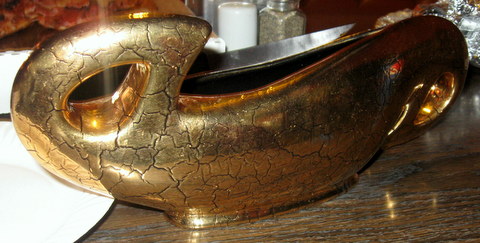 Black & Gold centerpiece with two handles. No artist name. Possibly 1930's.