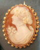 Gold cameo brooch surrounded by 28 black diamonds. Unsure of mark in pic.