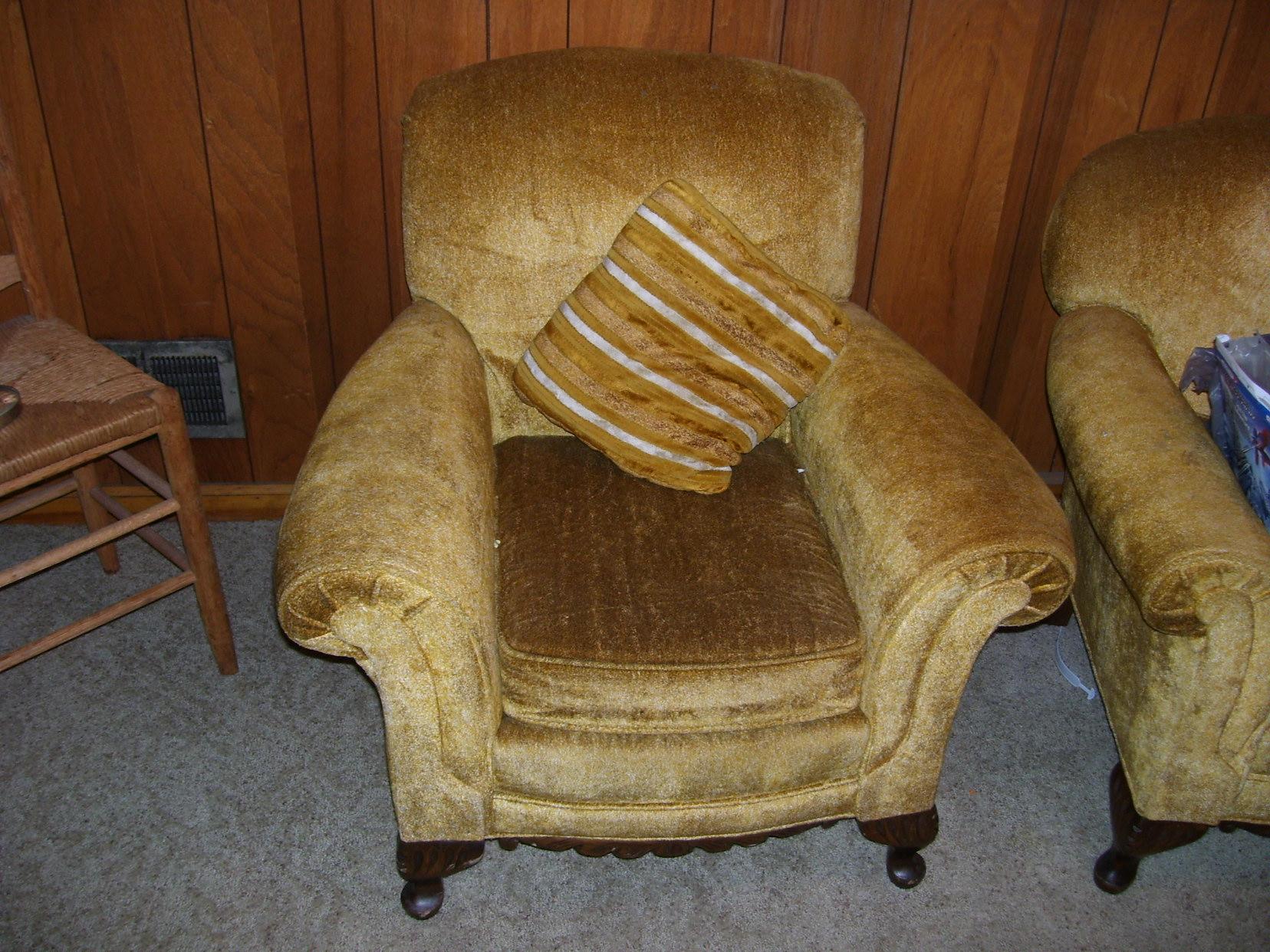 2 matching chairs. Interested to know any info about the chairs and  their possible value. (p.s. The pillows did not come with the chair.) Thanks for any help you can offer!