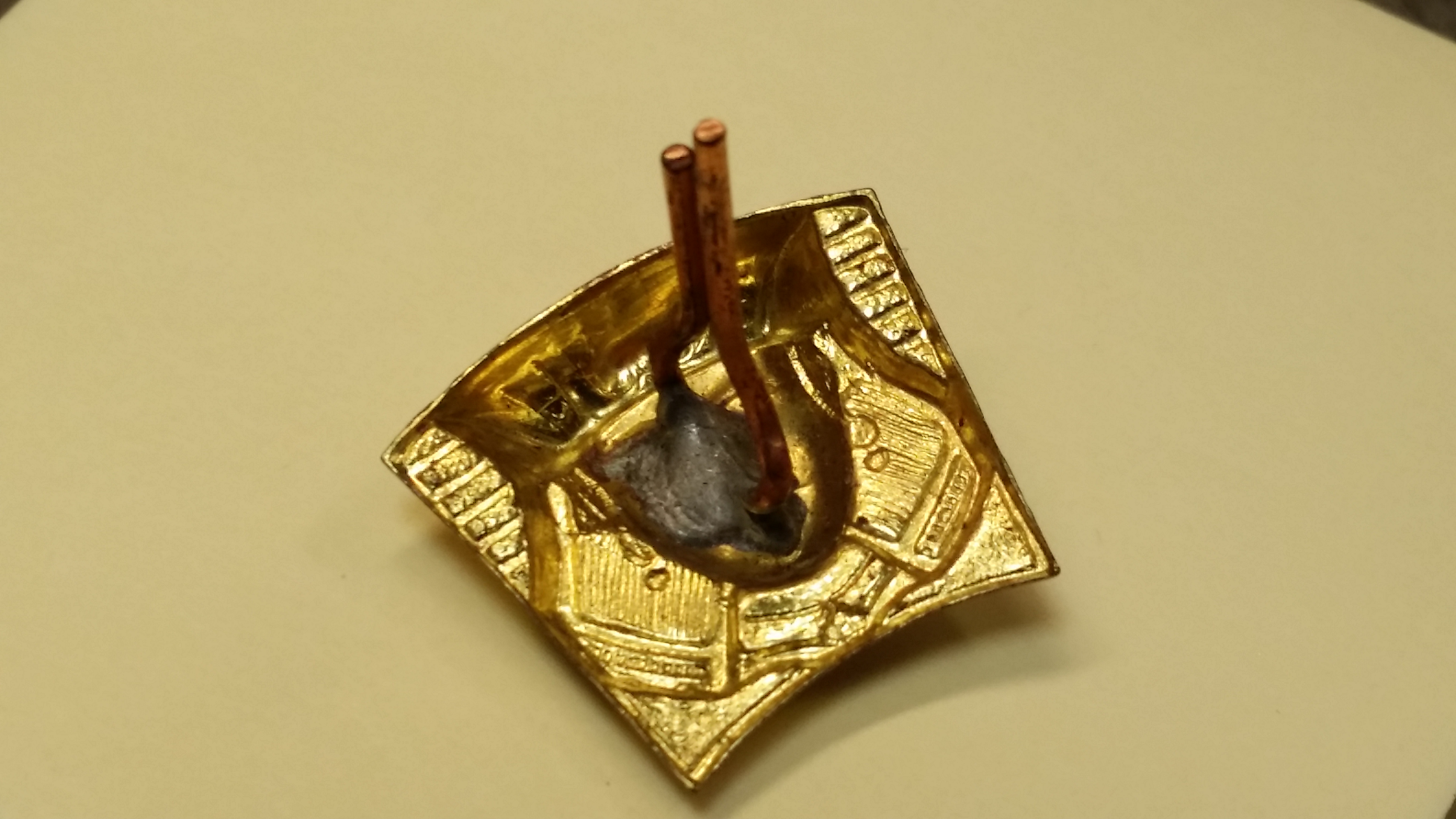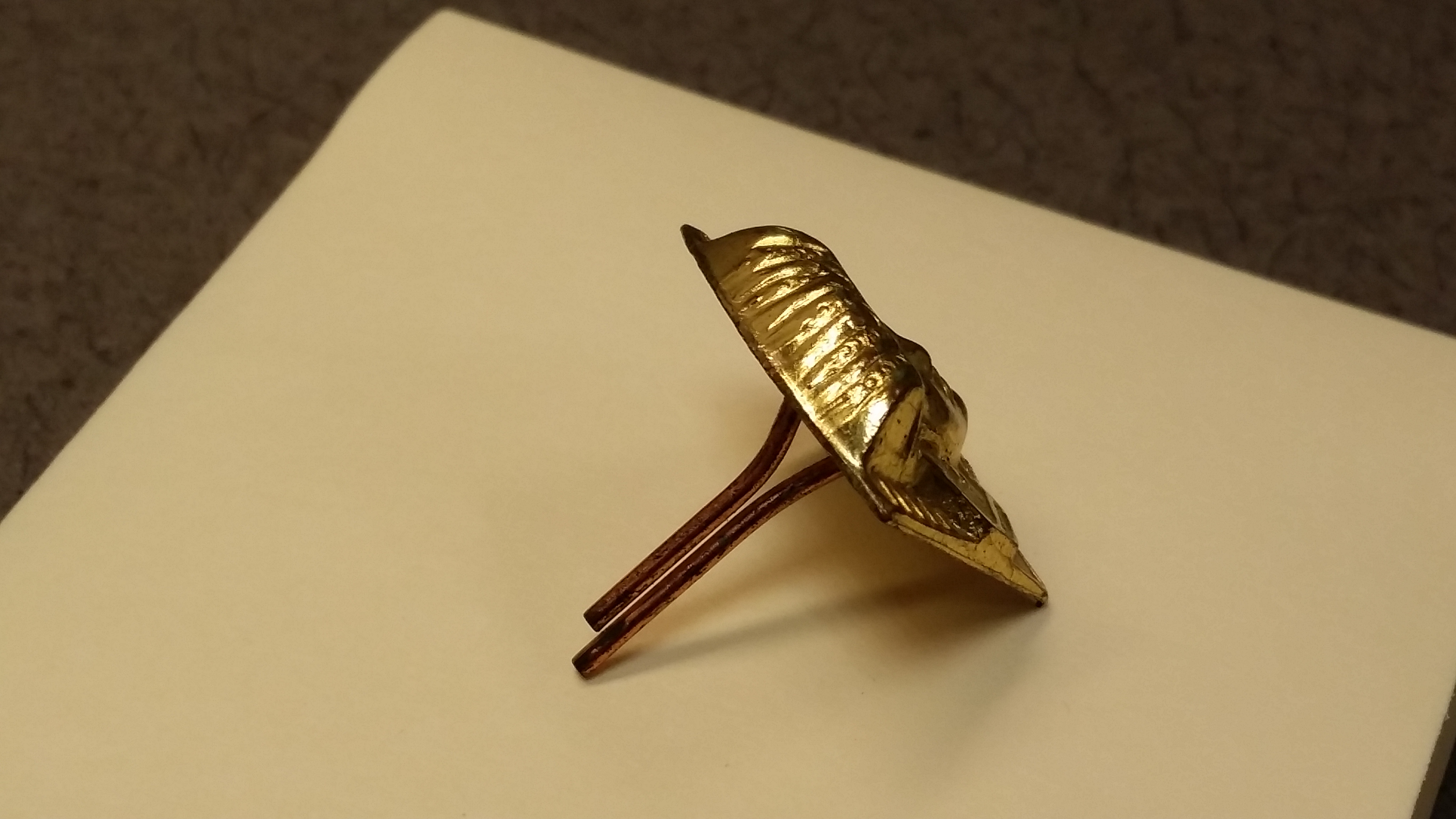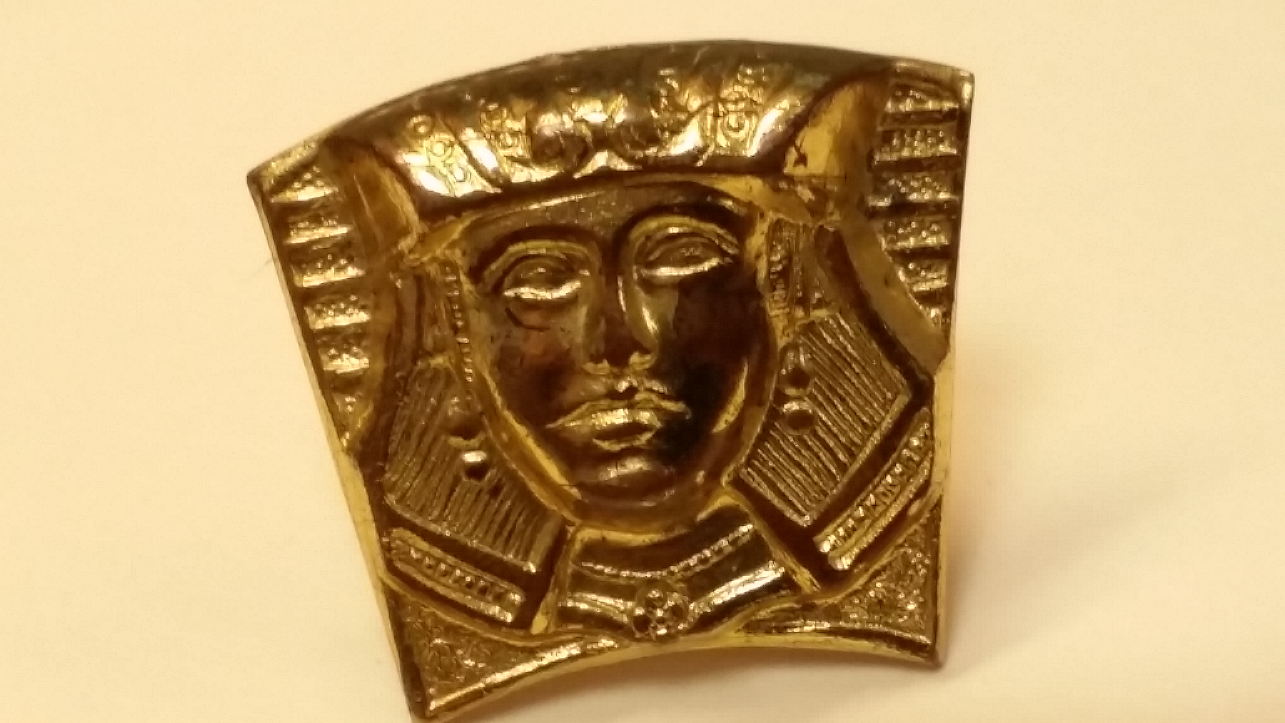 Pharaoh head pin, no back. I don't believe it is real gold.