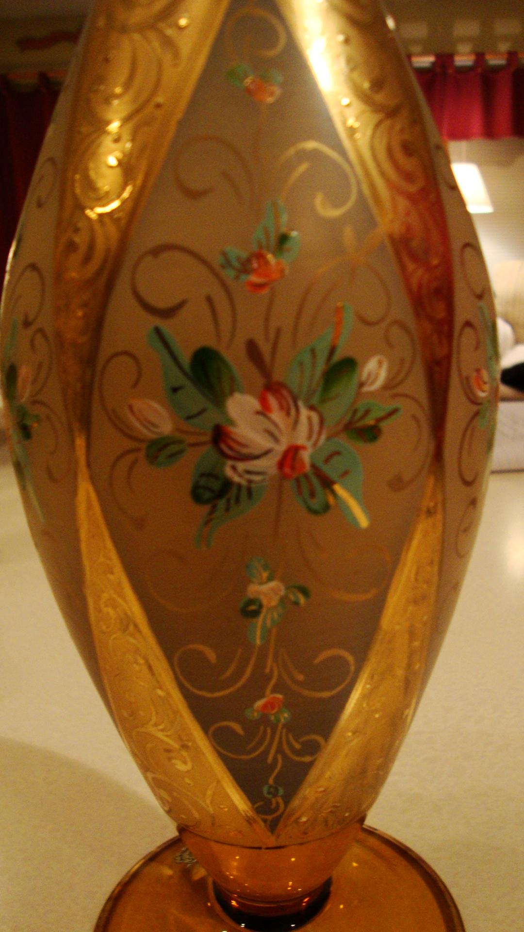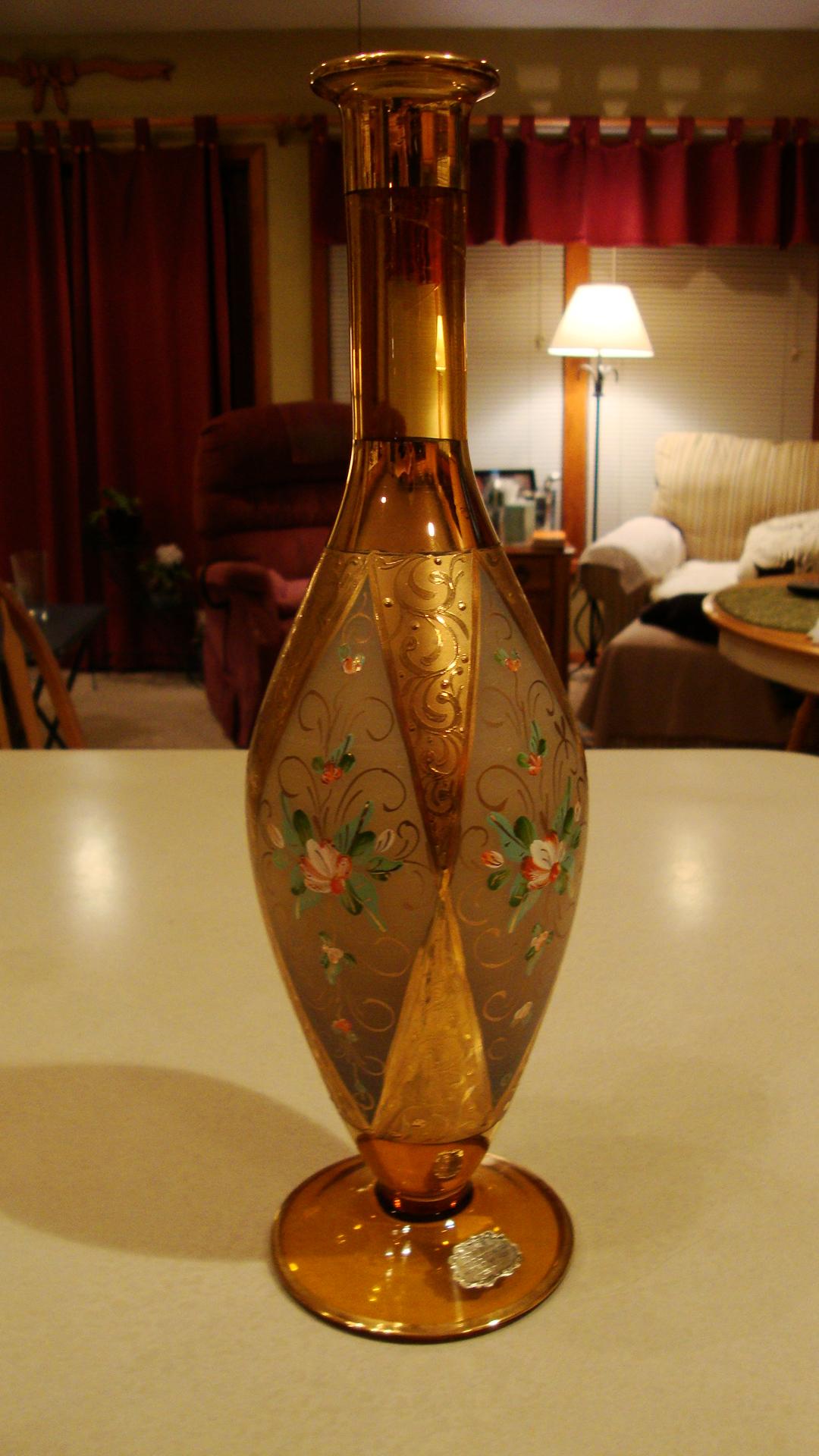 Inscription on base says, "Hand Blown, Hand Decorated, With 18 KR Gold, Made In Italy"