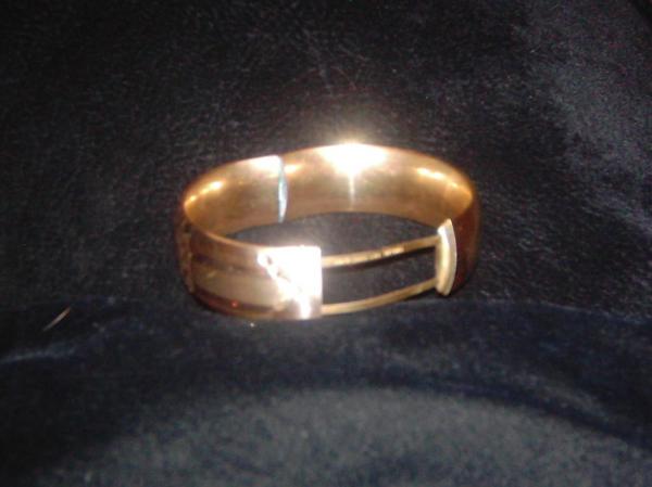 Design on front looks like it could be a space in middle for engraving surrounded by flower design. Has zig-zag design on each side of center design. Outside design of that looks like < on left and > on right with what appears to be leaf lines. when open signature and pat date on bottom piece. Back is plain.