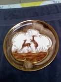 hand painted with gold leaf. deer jumping, with belquim on the back, 2 Bs, the number 3 in gold leaf. hung on grandparents wall for as long as i can remember.