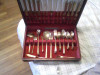 We get several requests for appraisals on this type of flat ware, it's actually a form of bronze alloy and not gold plated. These sets tend to originate in Thailand, most were brought back by troops & sailors stationed in the Far East after World War Two. Most sets like this have modest values and sell for less than $100.00.