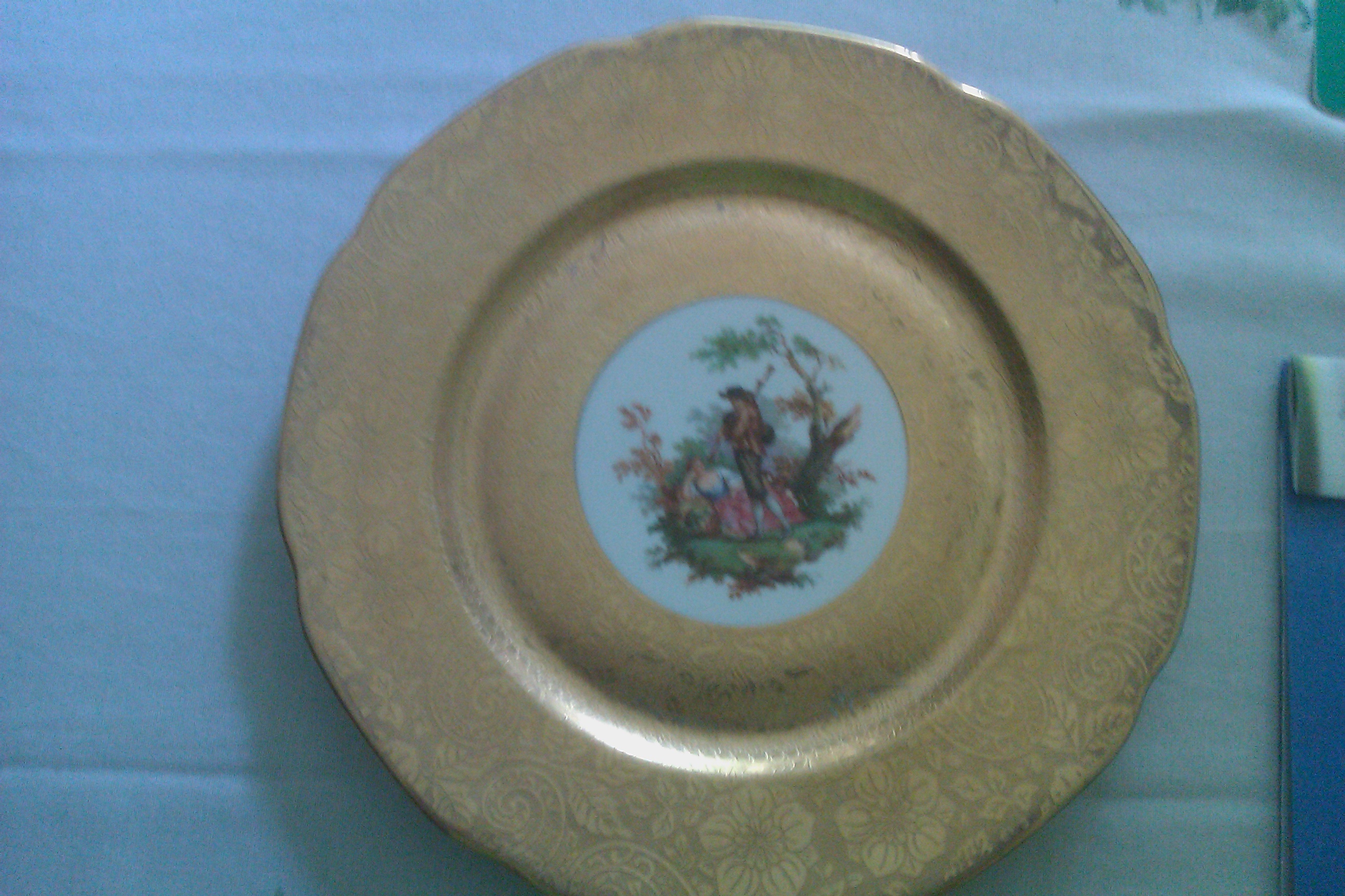 Set of 7 plates, 22kt gold plated, with "Americana"-style scene on each one. A picture of front and pack of plate is included.