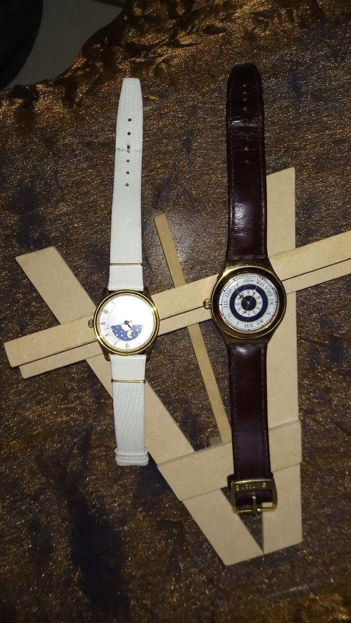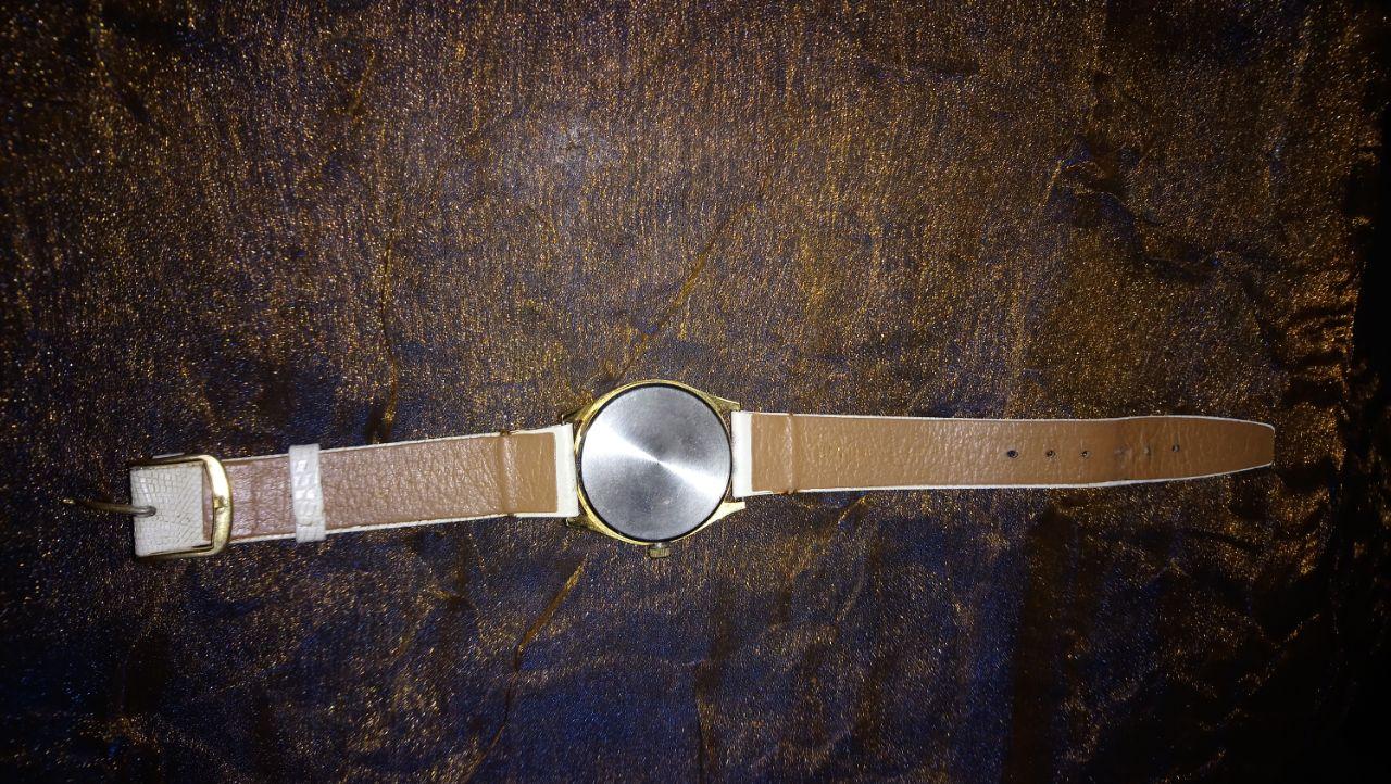 Roamer Quartz (vintage) White Leather Strap (looks original) gold trim, roman numerals, night and day display, white face,