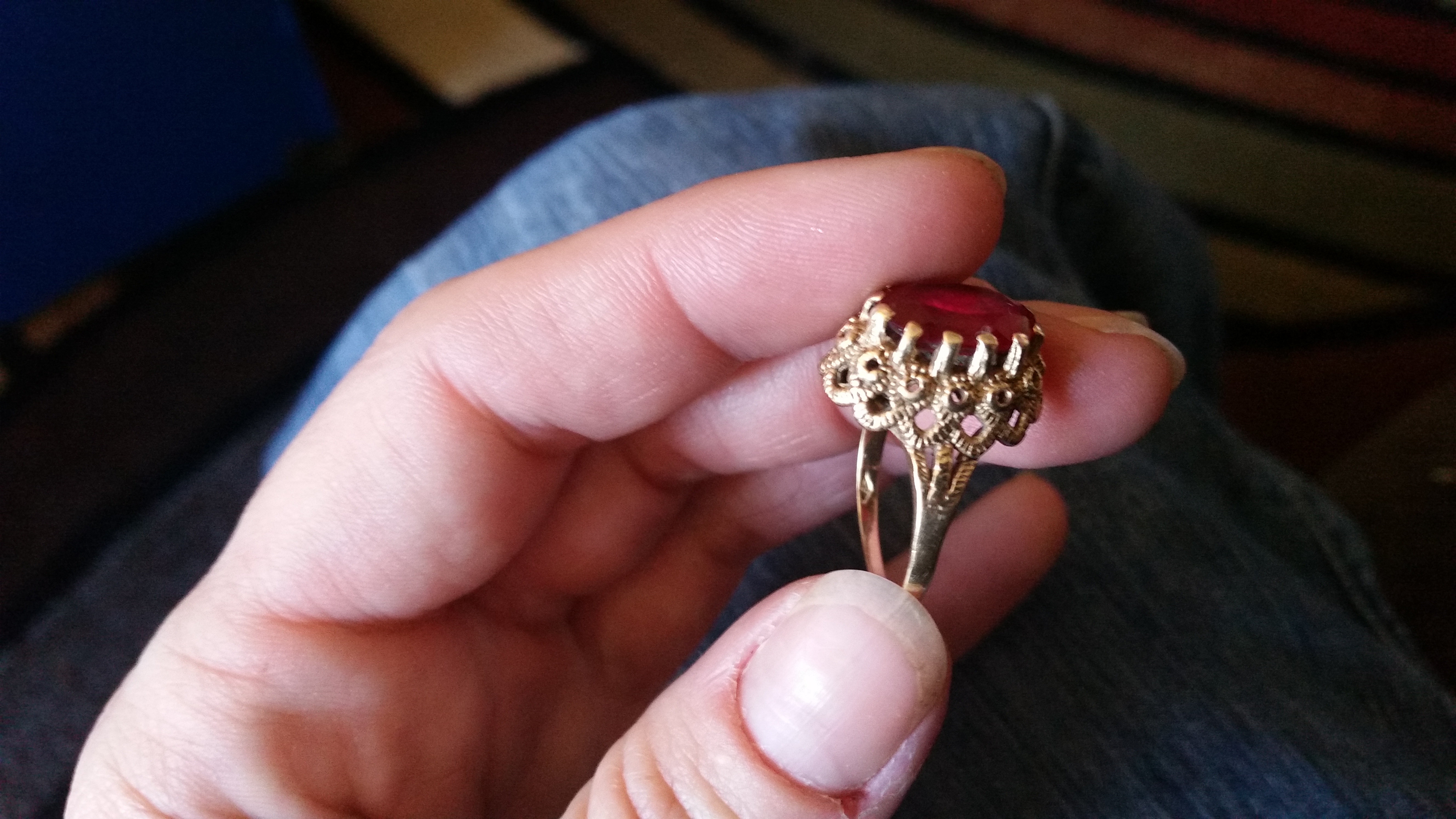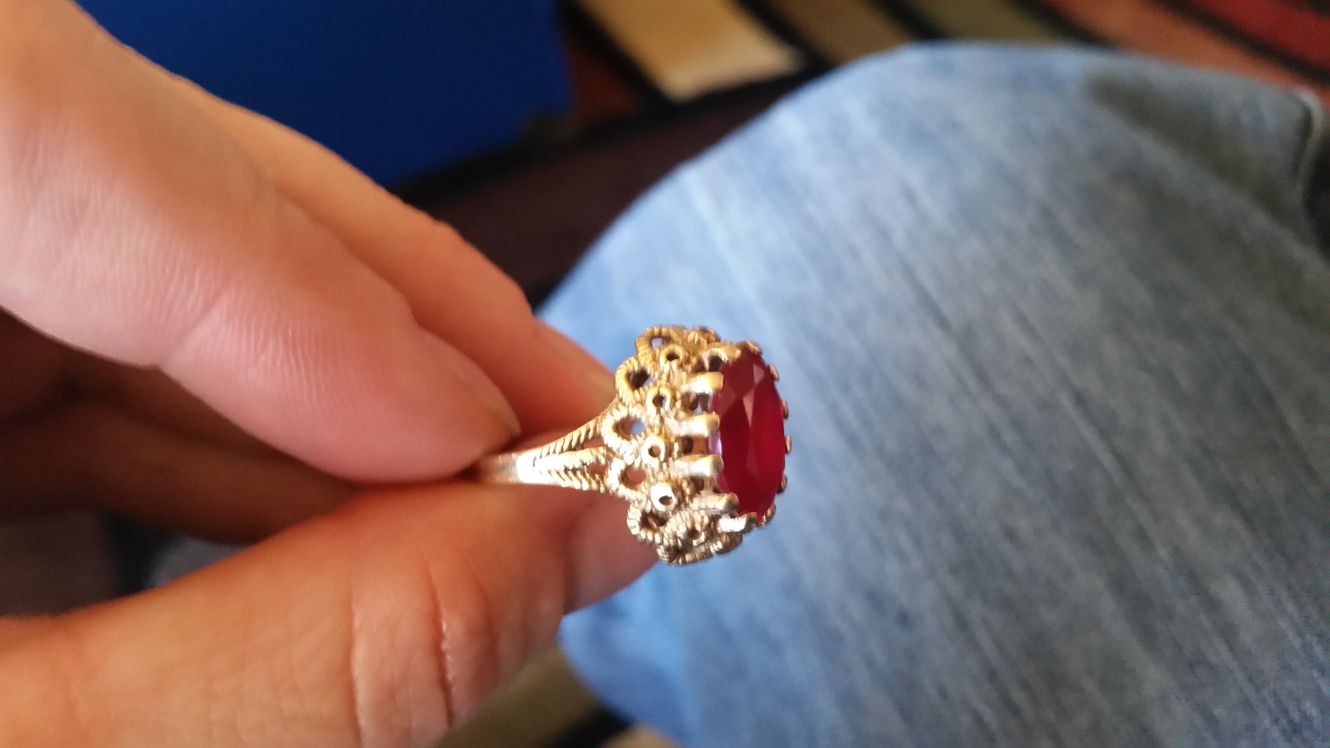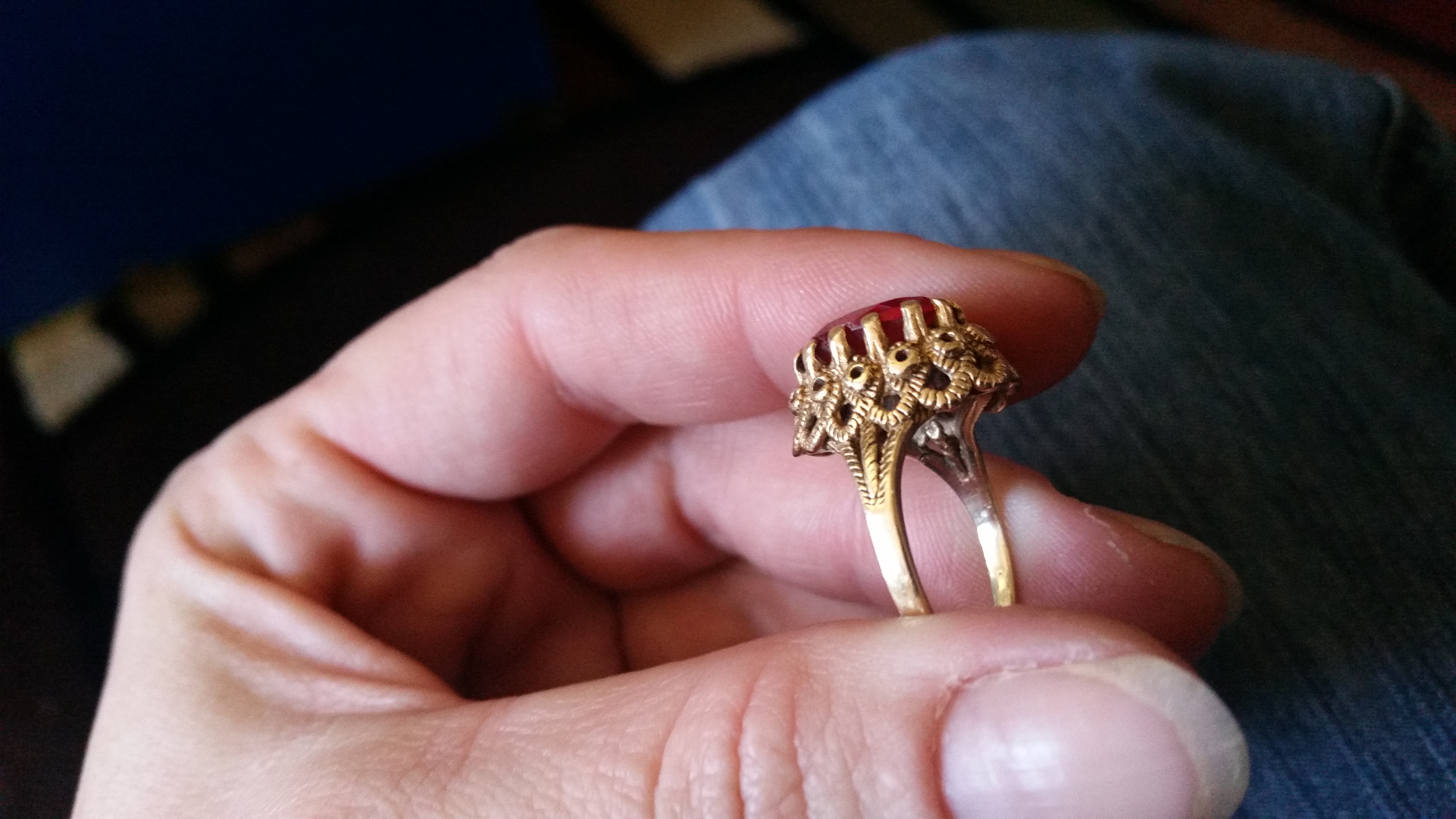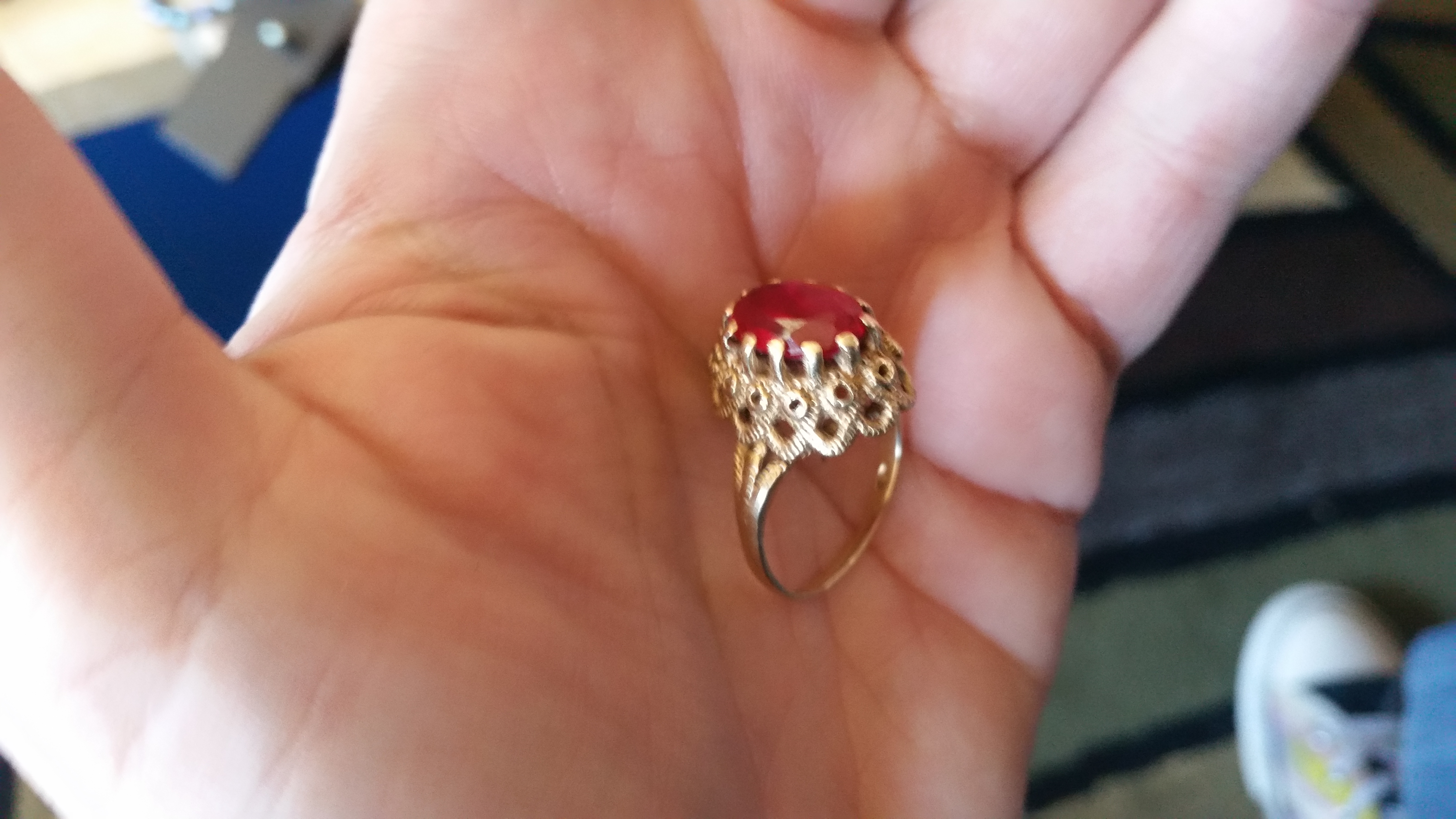 10k gold ruby ring. Diamond shaped stamp I can't make out. Looks like three letters.