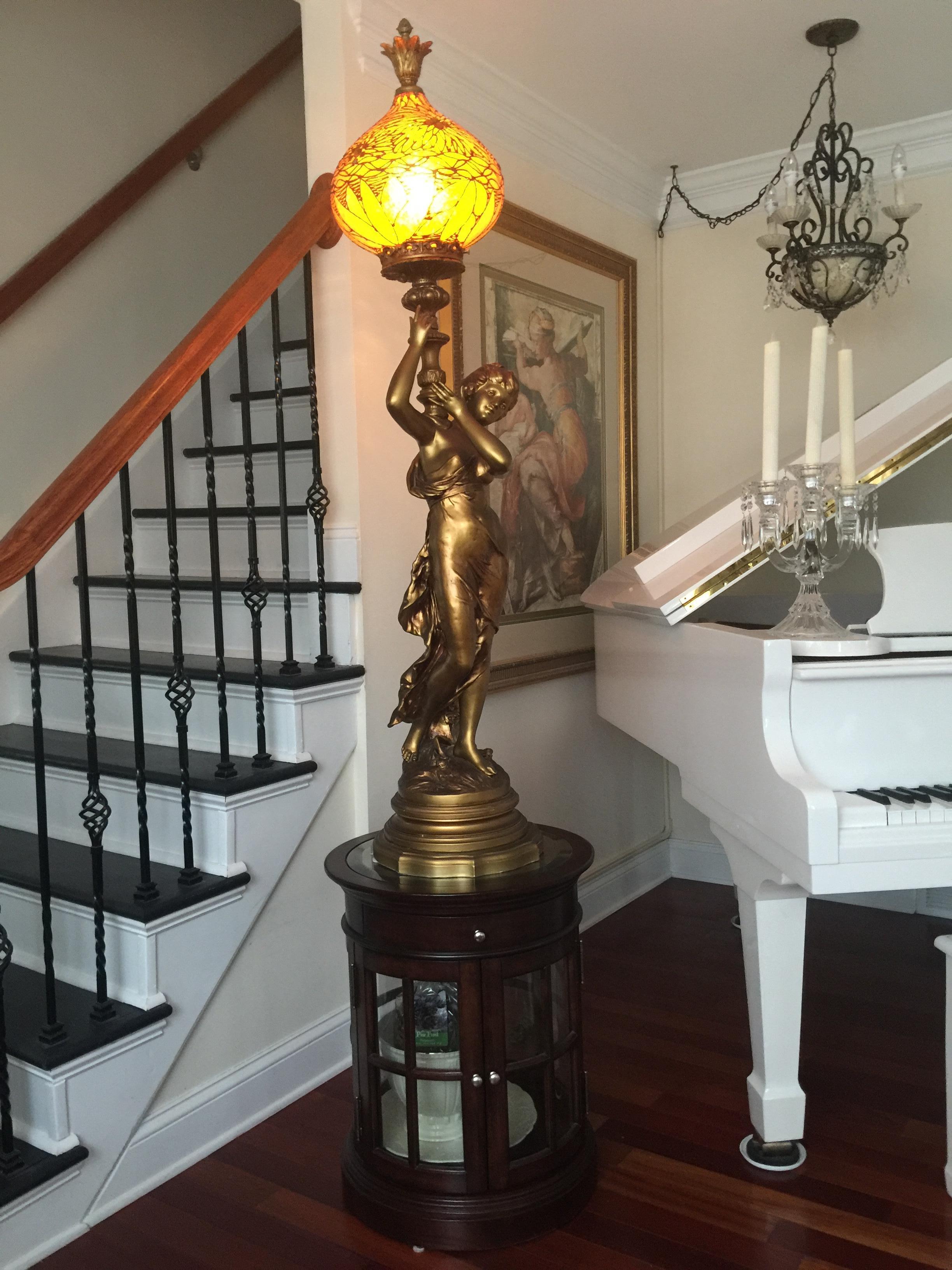 Statue has Granitex on back and on the metal frame for the globe it says L&L WMC 8823