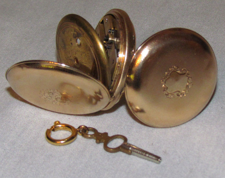 I have a gold pocket watch, it has a hunter case, and origianl chain with attached key for winding.
