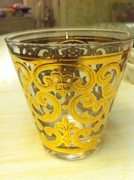 Complete set of 8, excellent condition, golden decorated glasses from the 50's.