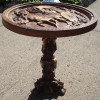 This table was from the the estate a friend of mine inherited. The man who passed away was the nephew of Dorothy Fuldheim. His mother was Dorothy's sister. We believe that Dorothy gave the table to her sister. Dorothy traveled overseas alot. I really do not know much about it. The legs are a gold color and the bottom part of the legs seem to be turning a copper color.The gold leaf is on the back of the glass. The glass is a unique shape.