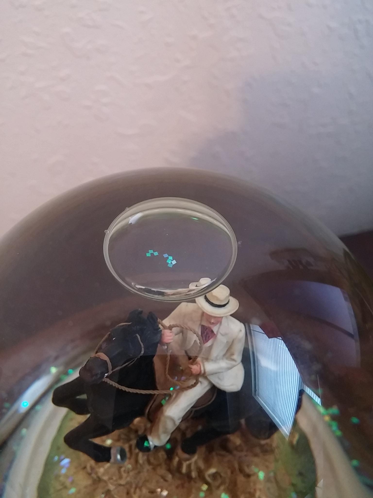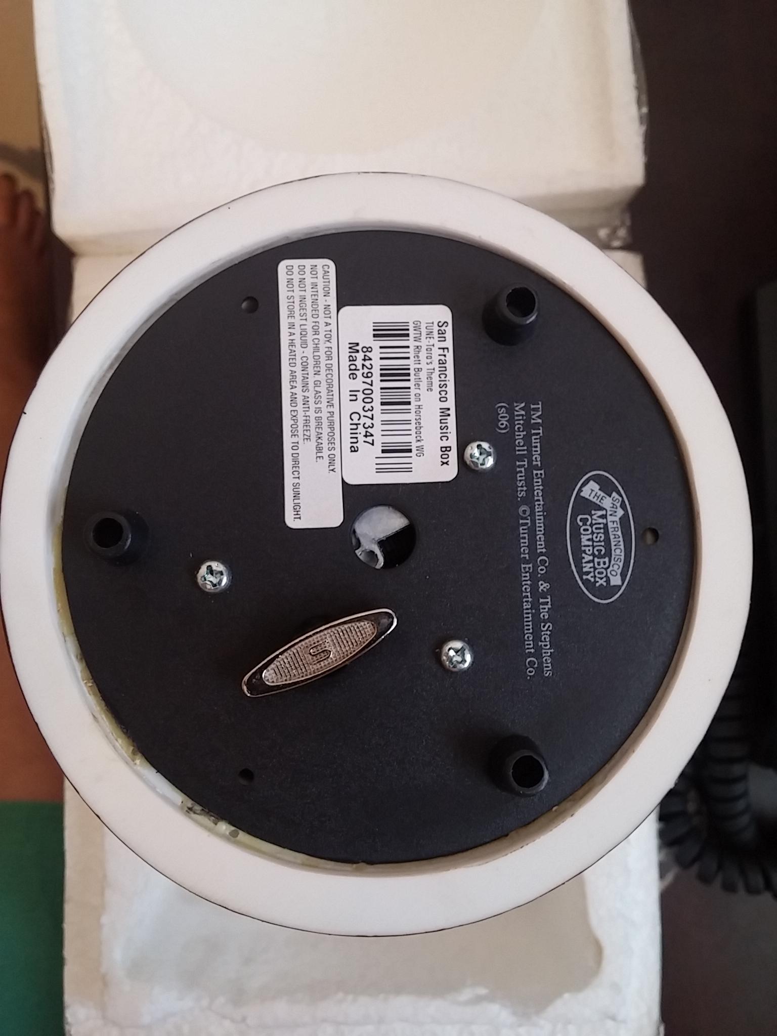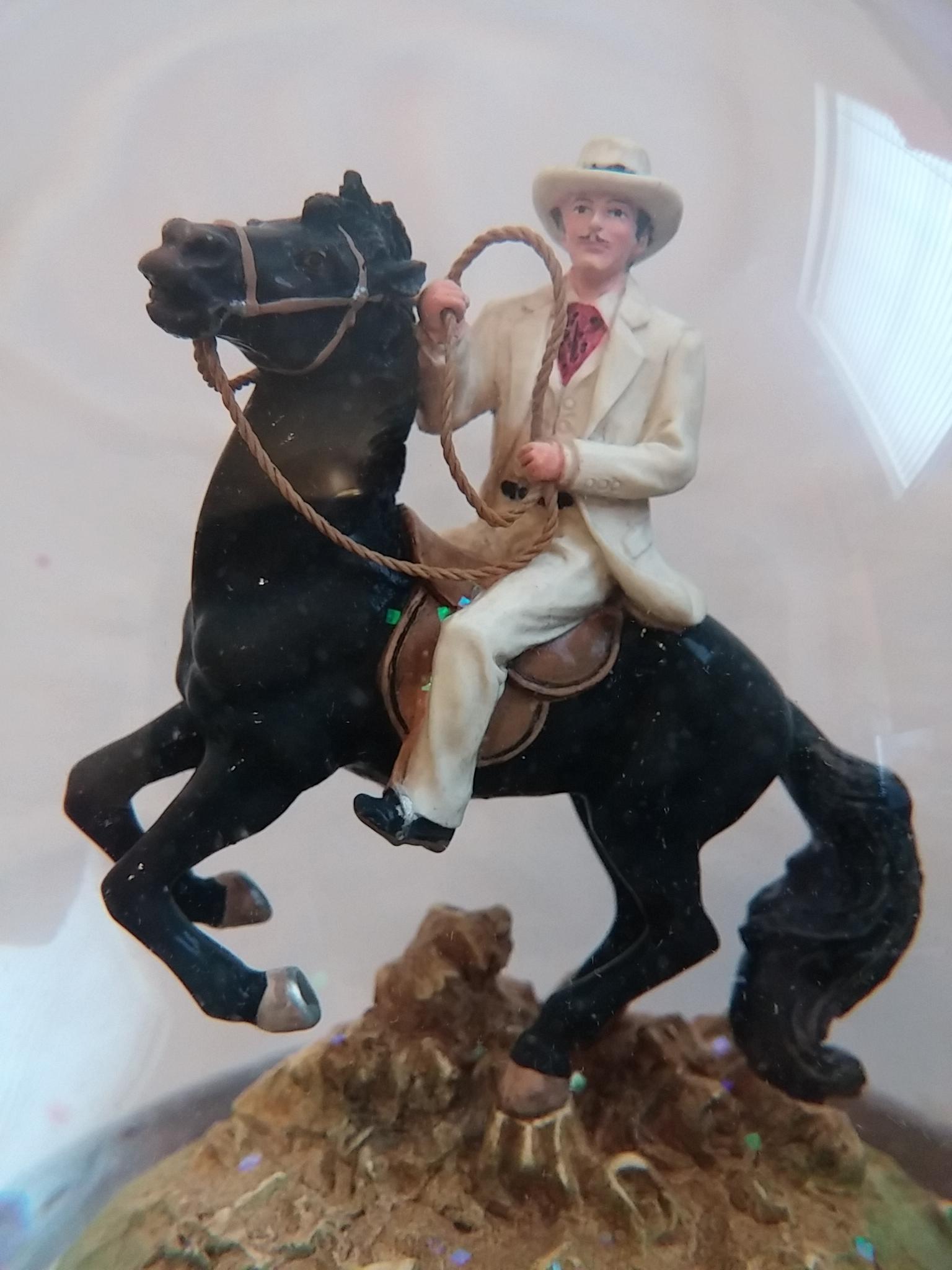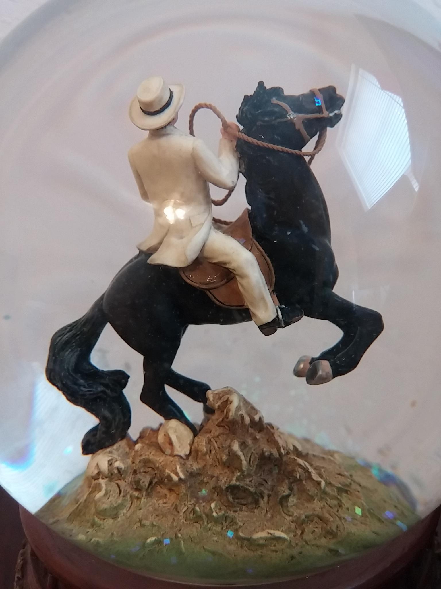 I have a San Francisco Music Box Company Gone With The Wind Rhett Butler On Horseback Waterglobe and was curious to it's value, if any. The Tune is 'Tara's Theme'. It measures approximately 4.75" W x 6.5" H . It does have a water bubble about the size of a dime. The water is clear but kinda looks like it has a tint because of the base color reflecting.