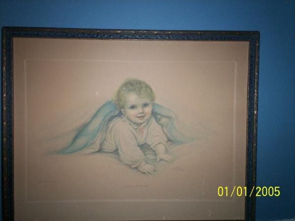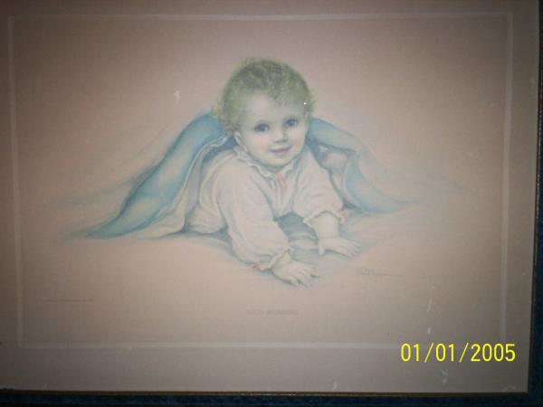 It looks like a print. Baby hiding under blanket, peeking out. Good Morning is printed on bottom, copyright Morris & Bendien New York is printed, along with Artist signature, not sure of the name. My guess is that it's just an old print, but I was just curious about it.