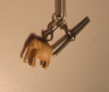 Turquiose, solid blue centre "eye" of harlequine crystal bead. I cannot see a hallmark, but there are a number of smithing tool marks on both the box clasp and the earring shafts and fixings which could actually be hallmarks. It is difficult to see clearly enough