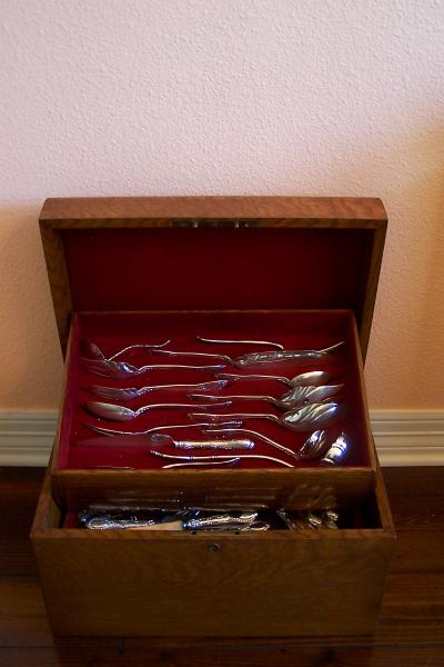 I wish to sell a nearly complete set of Gorham Old Colony 1896 sterling flatware in original three-layer lined handmade oak display case. Service for eight with extra flatware, specialty pieces, and a wide variety of serving pieces. More than 150 pieces in all. I have a receipt from Gorham Co date 1911 when a few additional pieces were added. Condition is very good. A few light scratches from normal wear can easily be buffed out.
