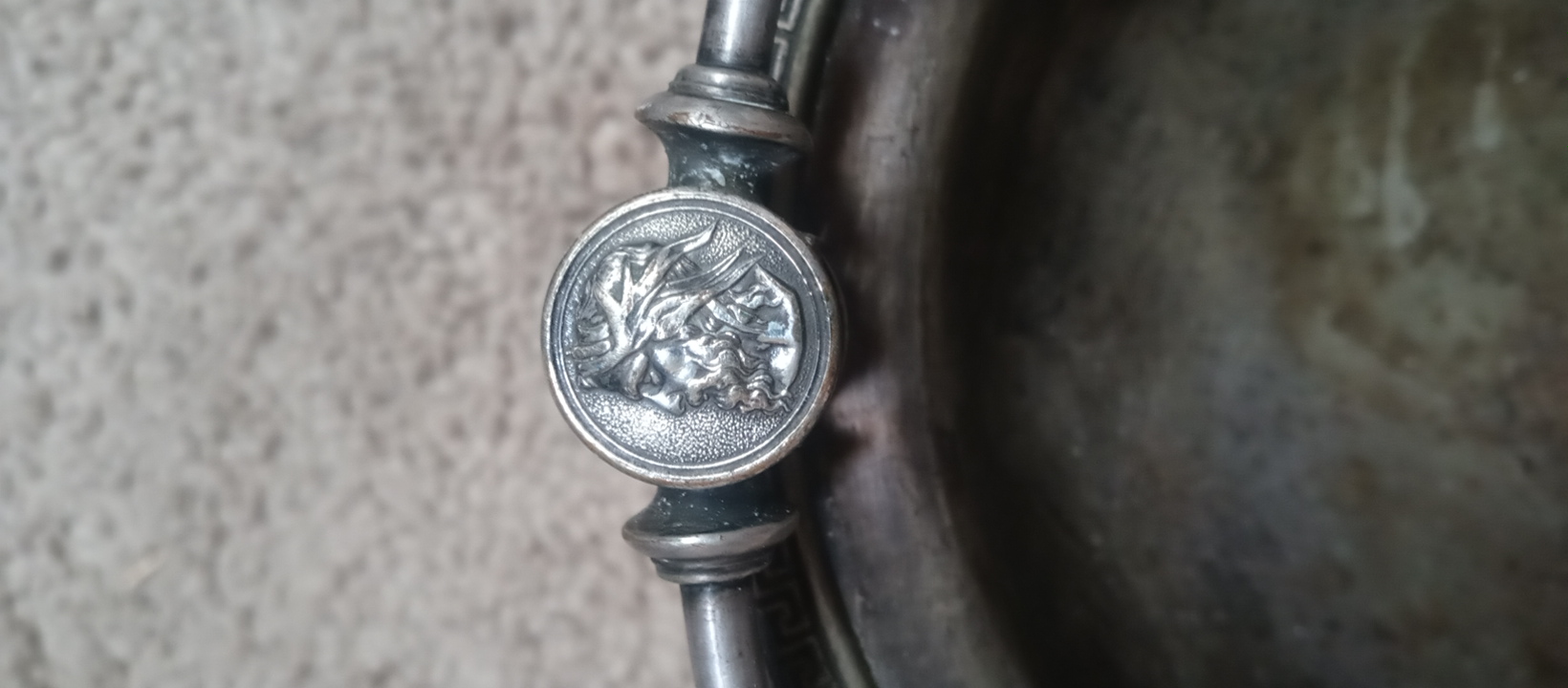 Solid silver with 4 different faces on it. One seems to be Julius Caesar. The bottom say Gorham with an anchor and the number 030.