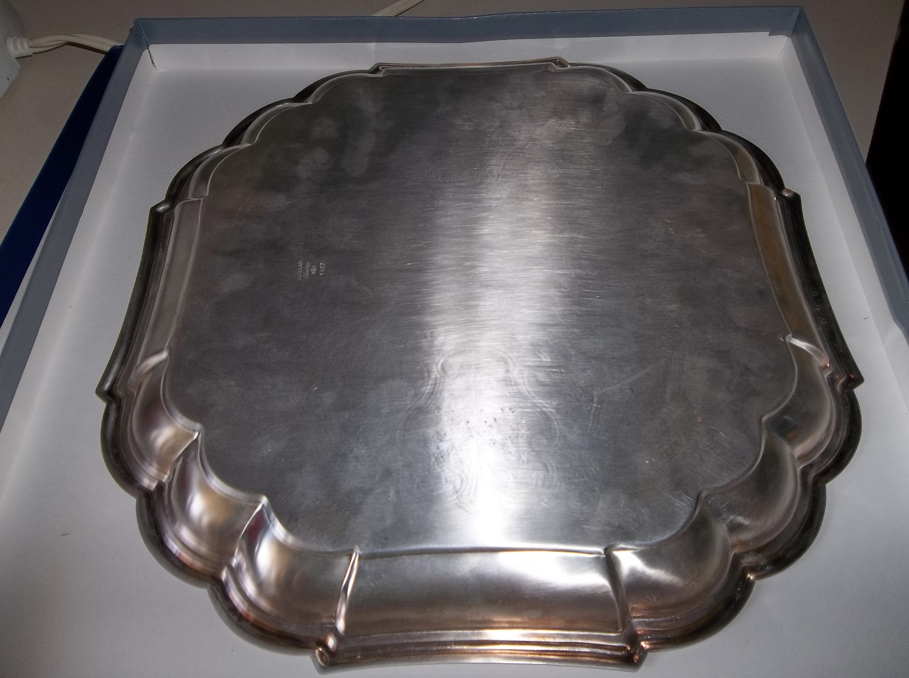 Gorham Heritage Silver Tray 11.25" x 11.25". Has YH27 engraved on back. Came in Blue Gorham Heritage box.
