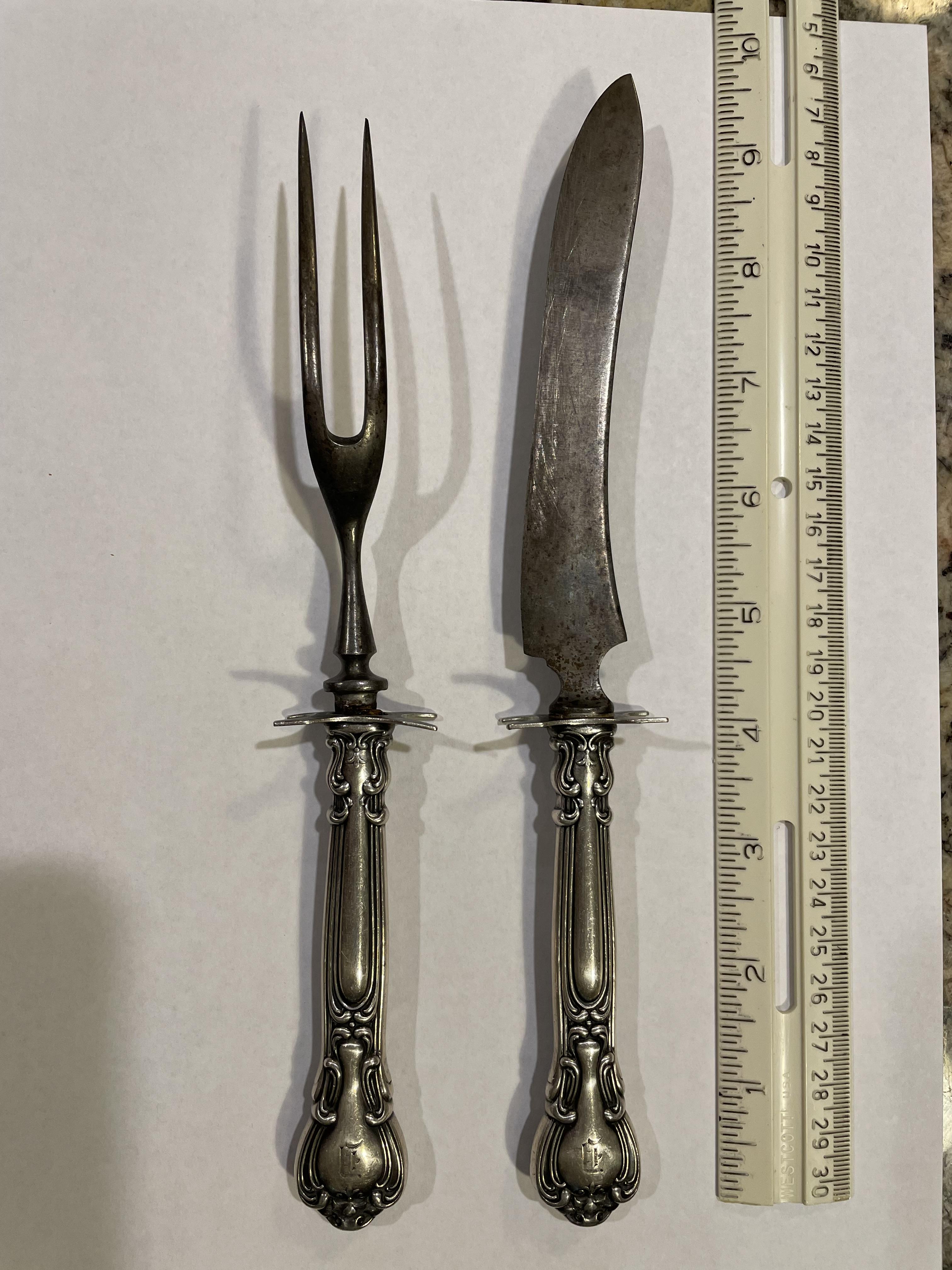 Gorham Chantilly Sterling Silver Roast Carving Set; Lion-Anchor-G: D;