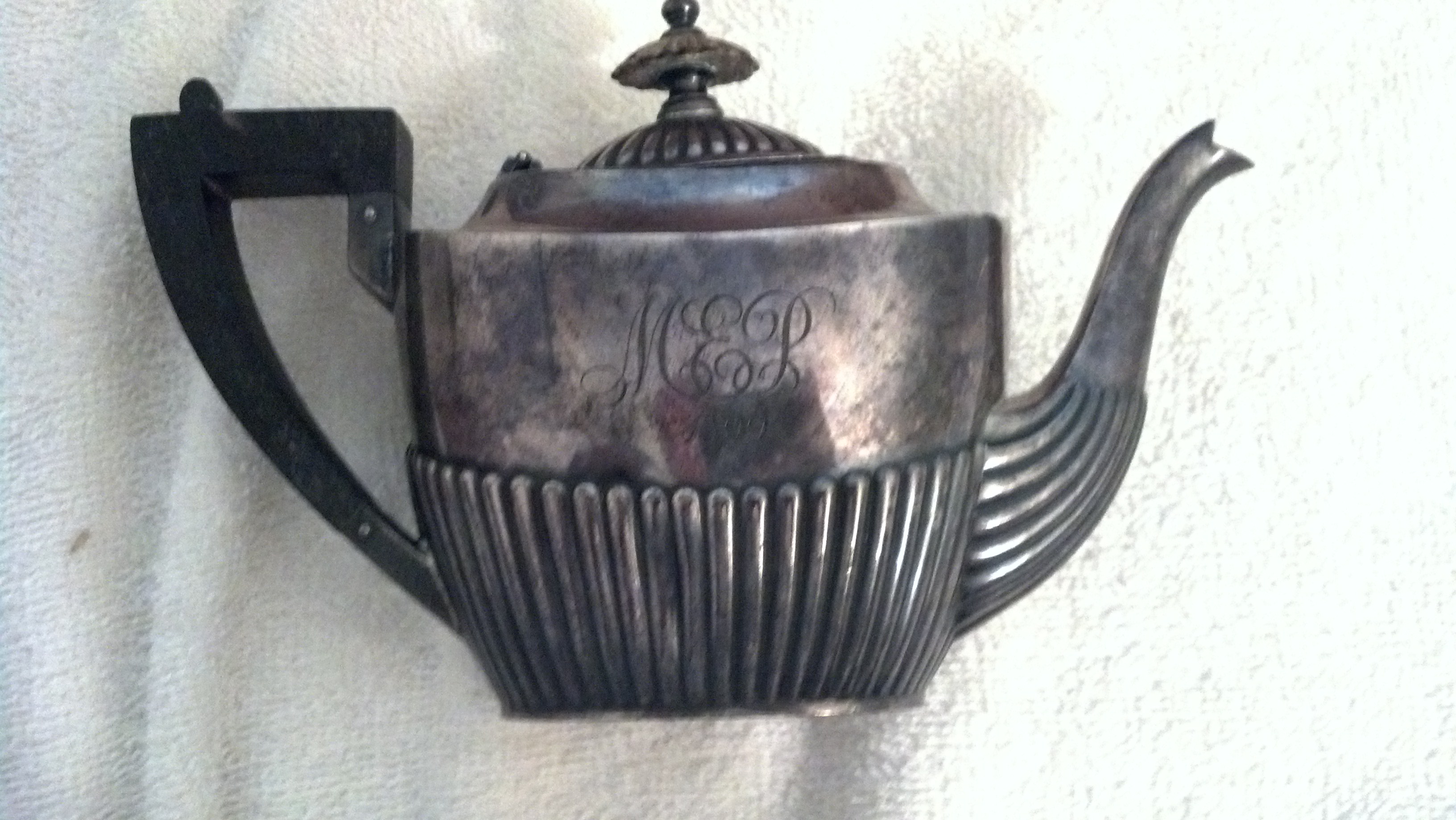 ****THE TEAPOT HAS A SMALL MINOR DING IN THE LIP OF THE LID AND THE LID DOES NOT LIE FLUSH IN THE CRADLE A LITTLE.... ALSO THE SPOUT HAS A SMALL DING IN IT (SEE PICTURES)