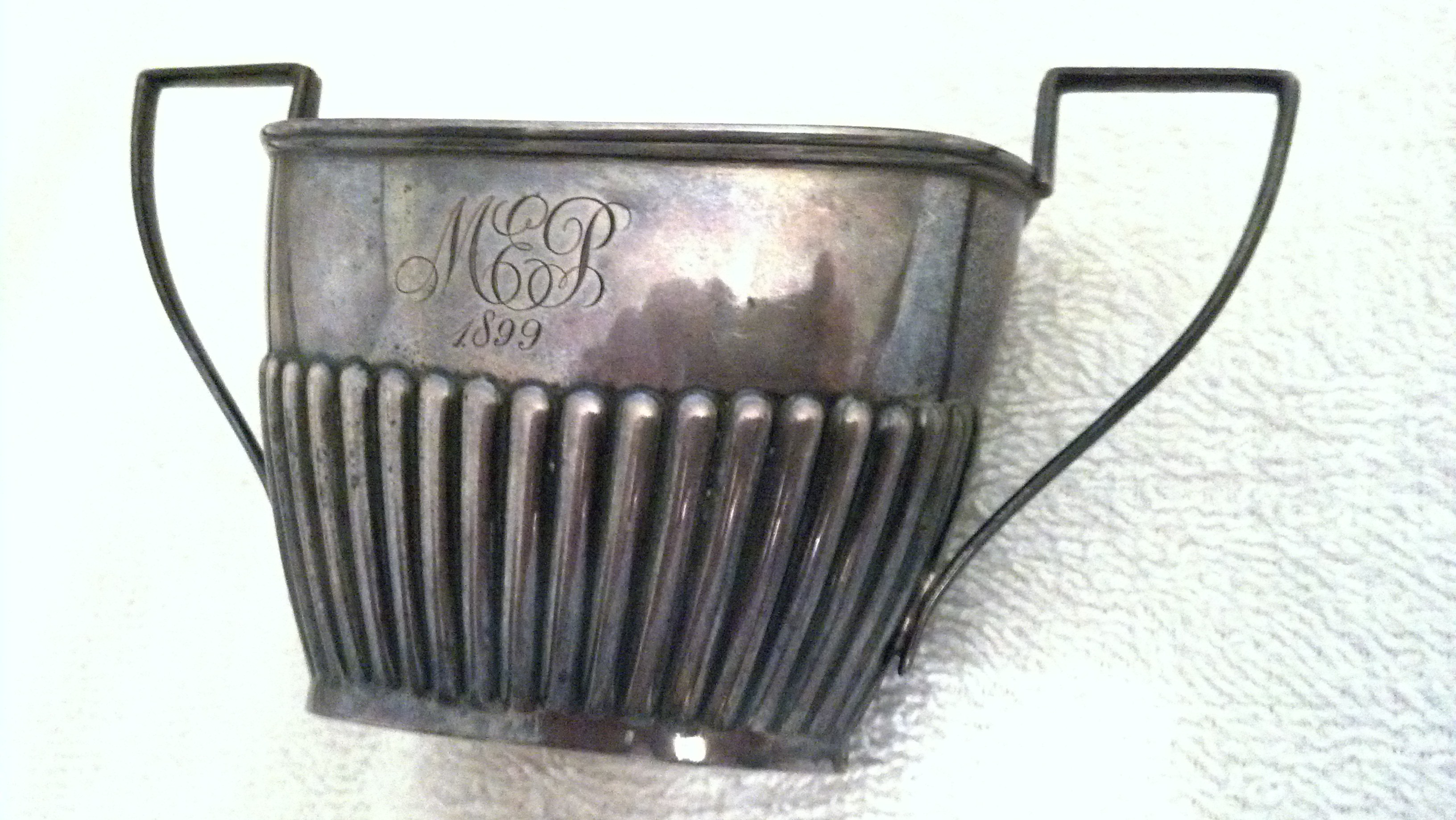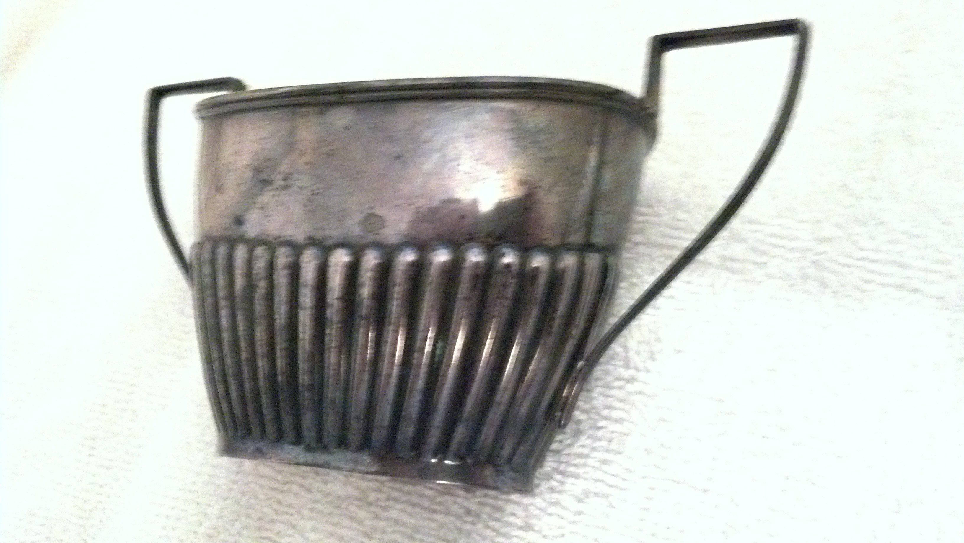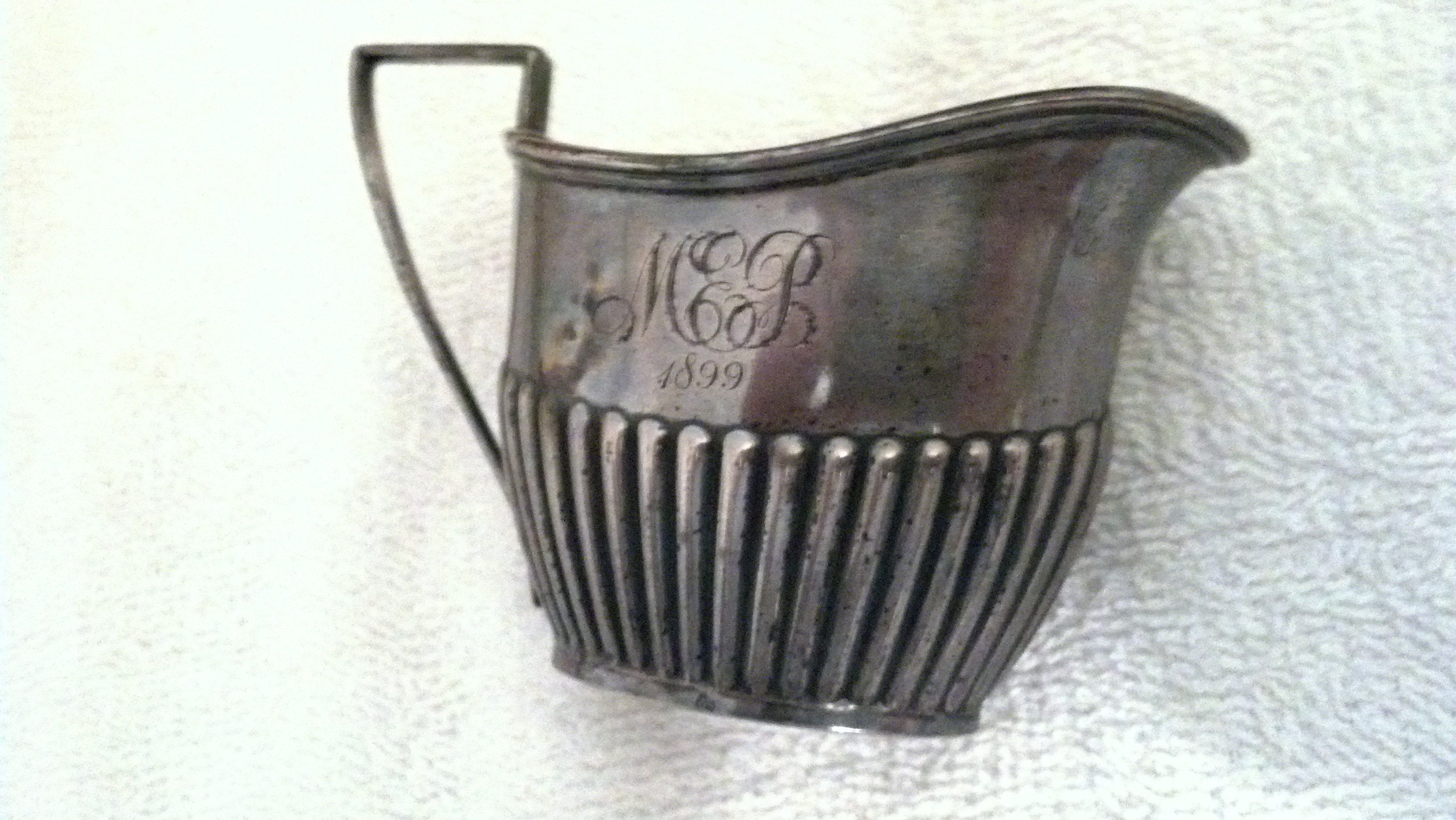 CREAMER: 4 1/4" side to side including handle / 2 1/2" high at deepest point / 2 1/4" wide
