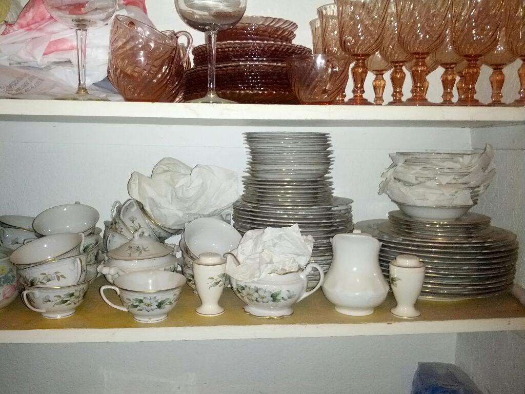 Service for 12 includes sugar bowl, creamer, salt & pepper shakers and a gravy boat.