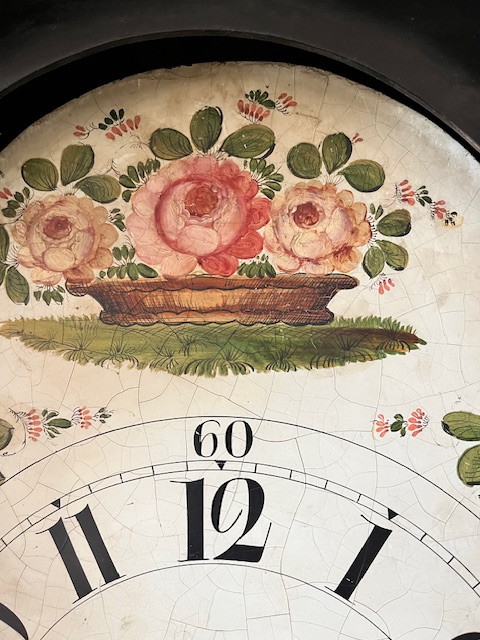 Dial: Hand-painted floral decoration, crackle pattern indicative of age