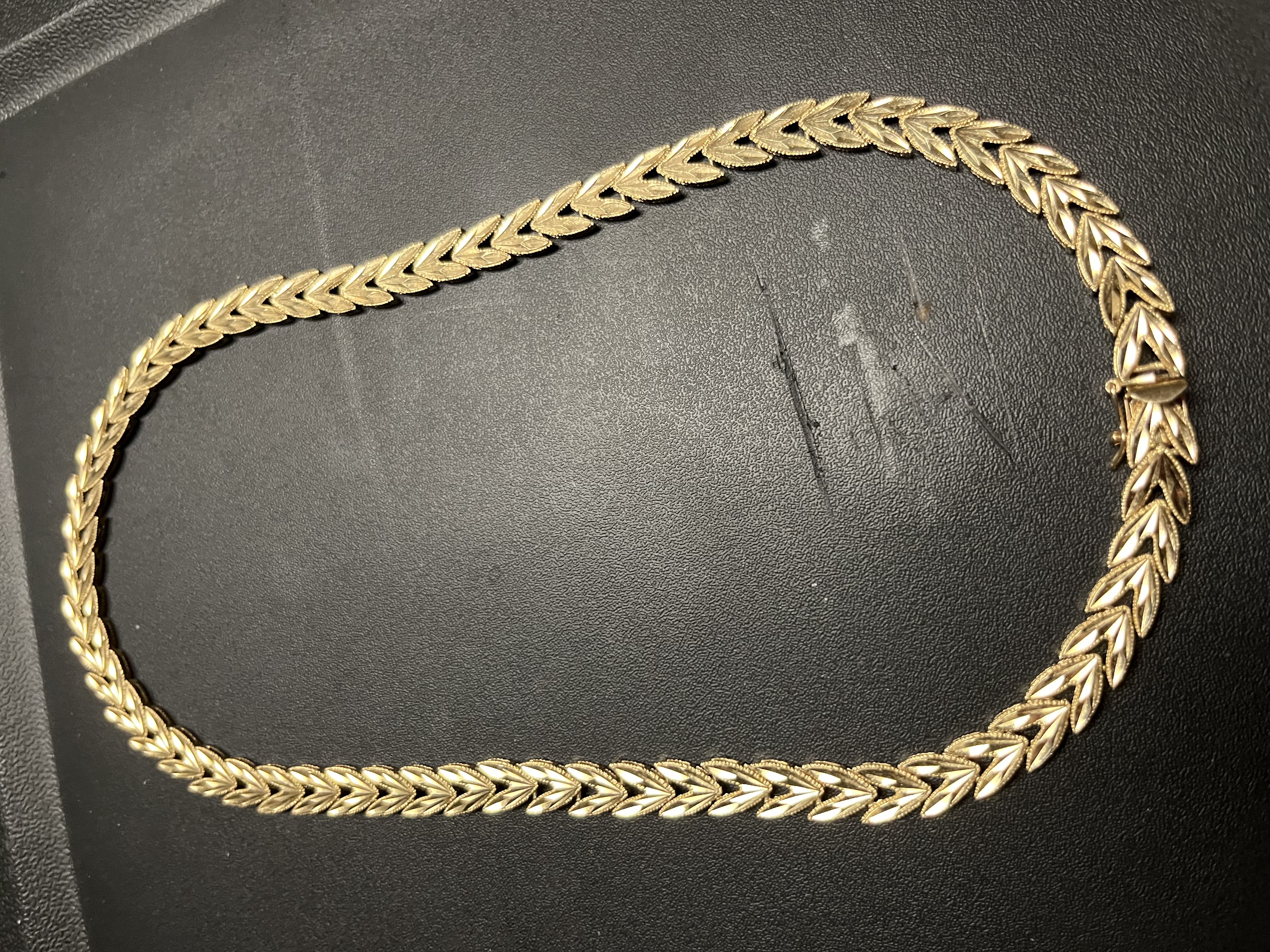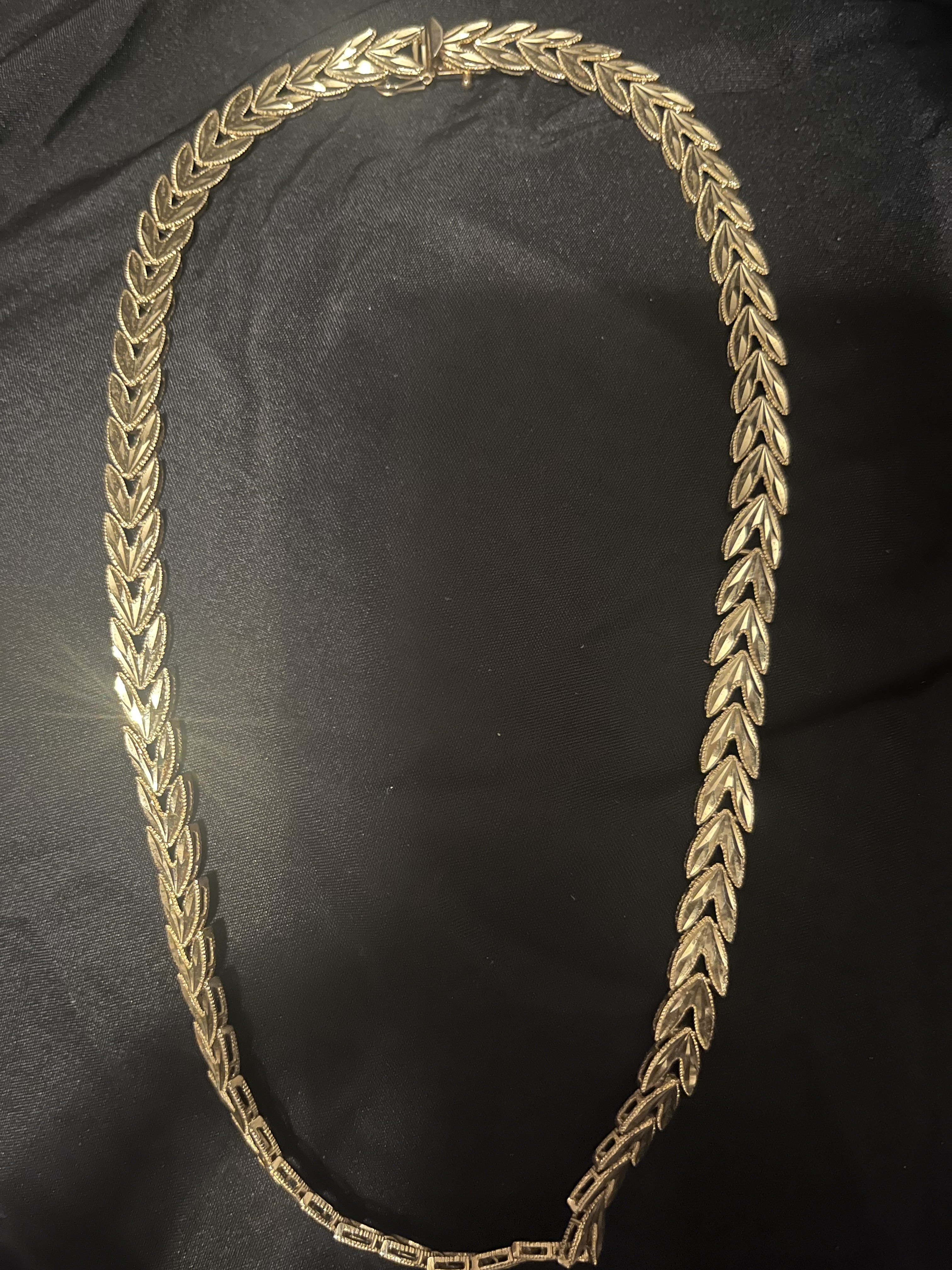 Description 1.02 ounce 14k gold necklace wheat leaf or some design