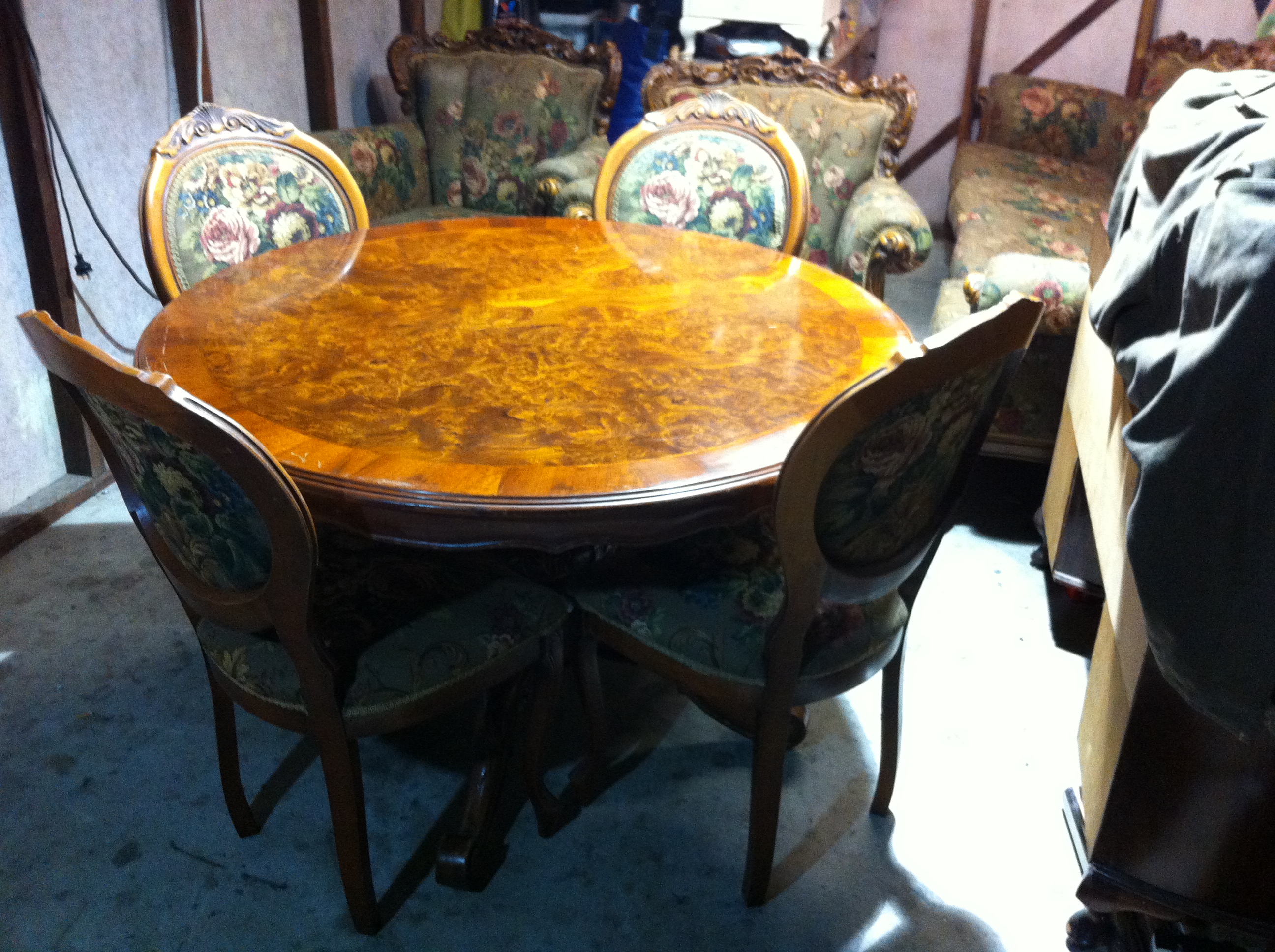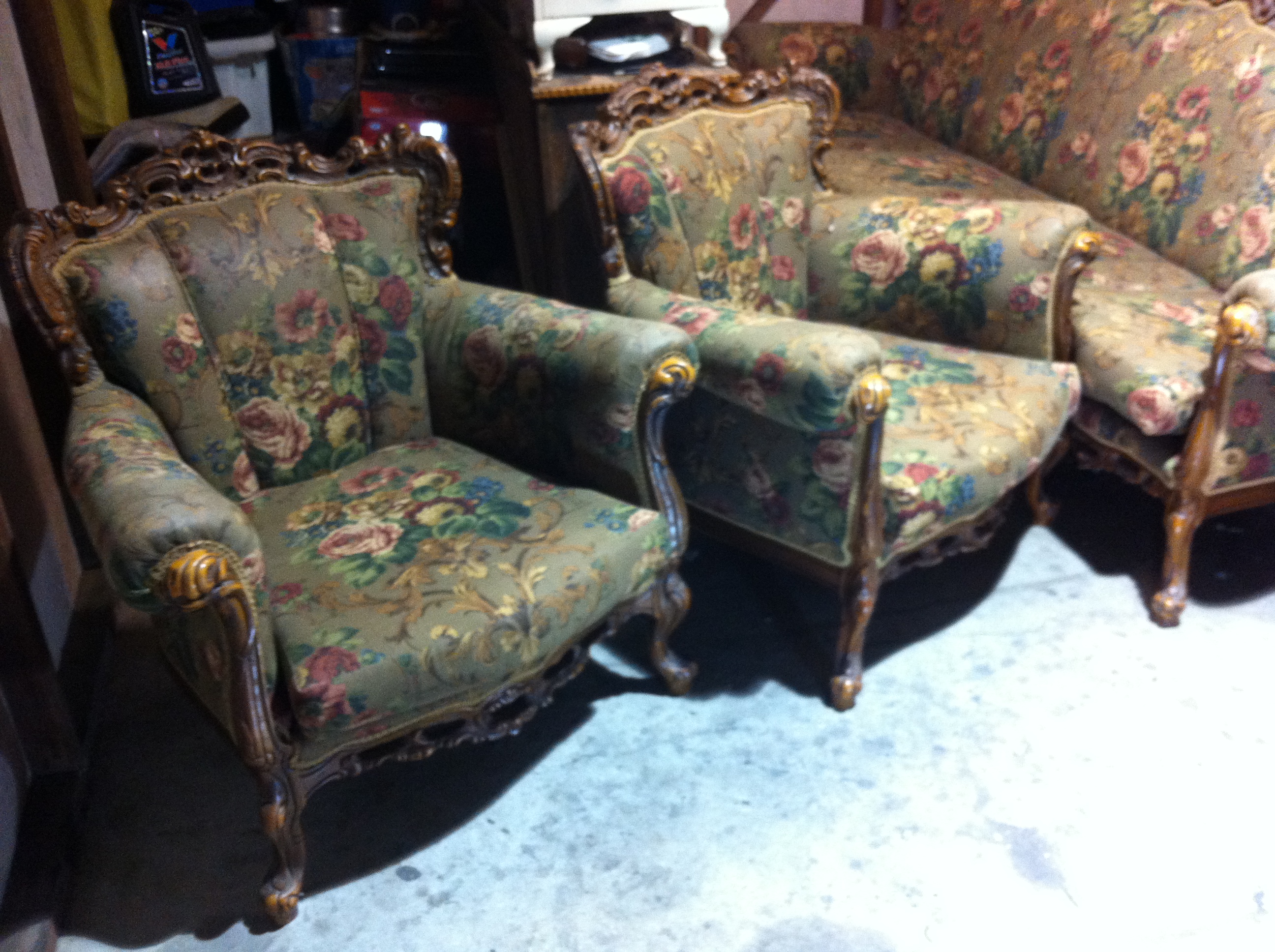 The complete set consists of 1 x 4 seater lounge 2 x lounge chairs 2 x chairs with arm rests 4 x dining chairs no arm rests 1 x dining table