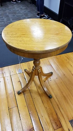 Looking for info on a round table with 4 claw feet covered in brass. Maker Grand Rapids cabinet making certified and the tag underneath the table reads I-50147