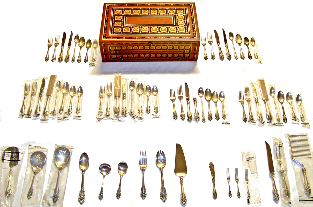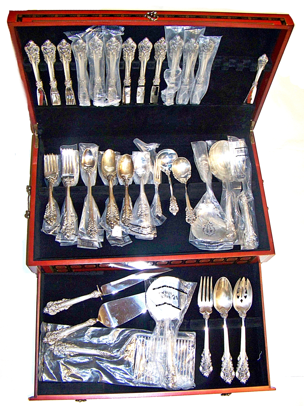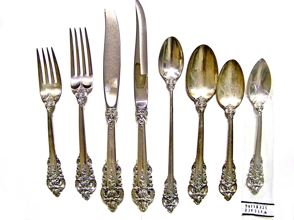 1940s Serling Silver Wallace Garand Baroque Flatware.