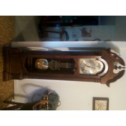 I remember yrs ago she told me it was worth lots of money. She had two Grandfather Clocks and told me this one was the most expensive. I'm not sure how she knew that or how she came about its possession. The key is jammed in the lock but the key is intact. I believe this clock is German, but again, not really sure. Best I can make out on pull chain are the initials FMS with what looks to be an Eagle.
