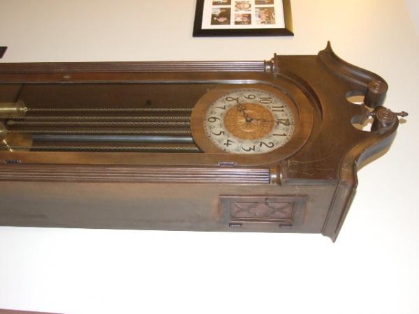 See History. Has a few scratches from a cat that climbed up to the top, otherwise in nice and working order. Keeps perfect time.